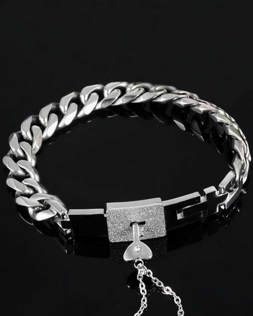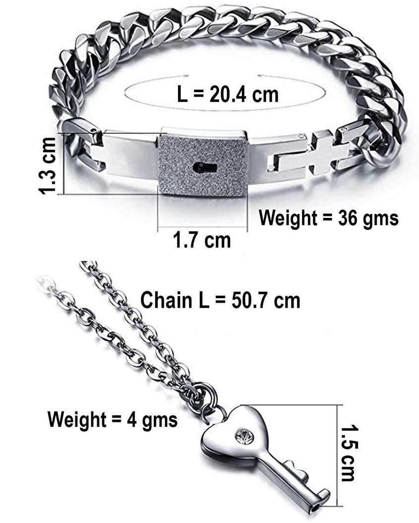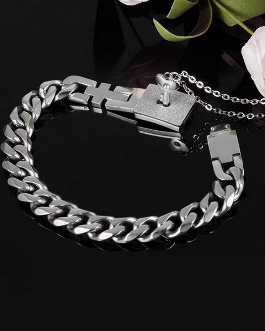 Engraved Lock And Key Stainless Steel Couple Bracelet Pendant Necklace Set |