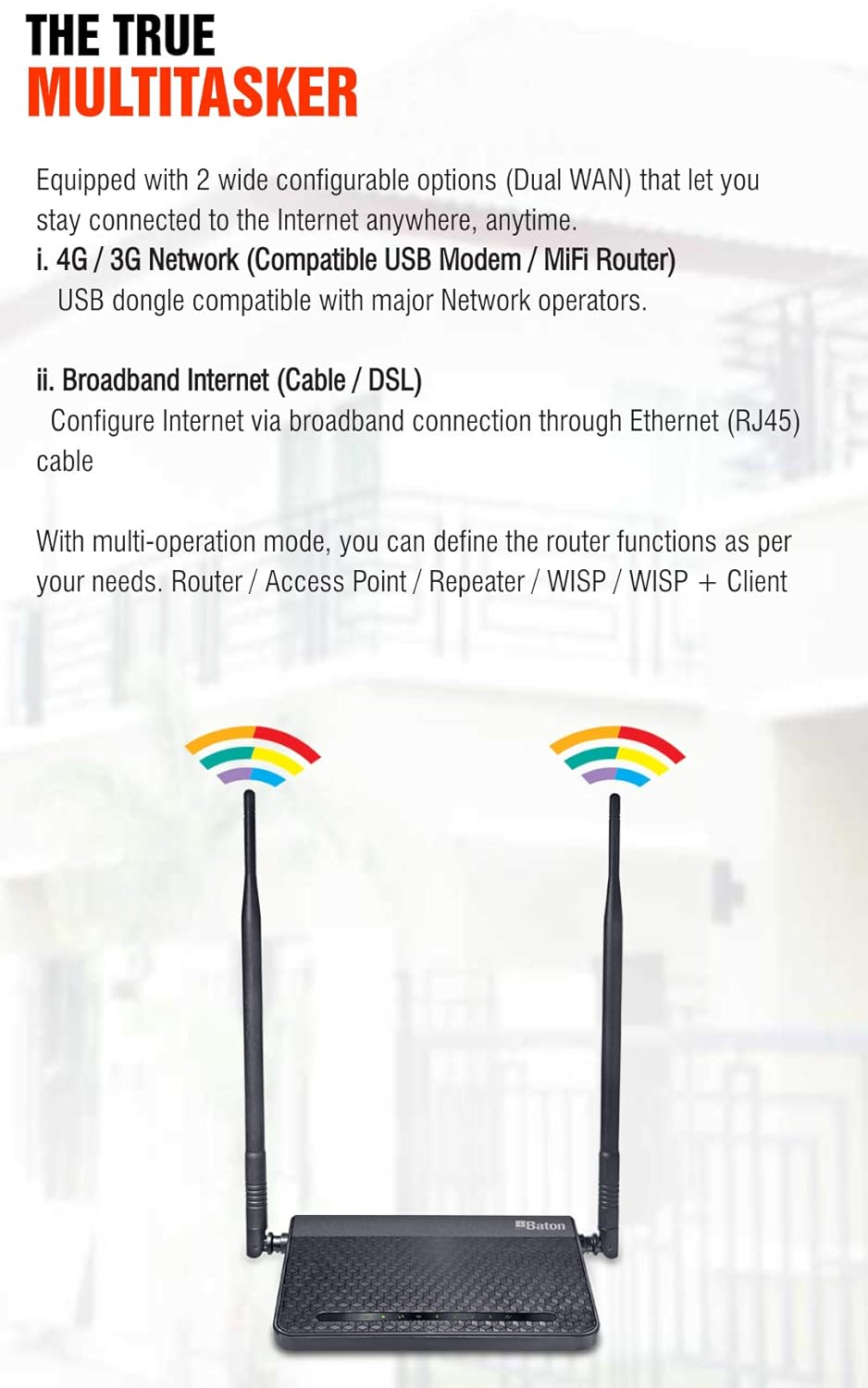| Additional Features | 4G / 3G HIGH POWER ROUTER |
