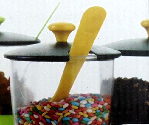 Provided with see-through containers so that you can identify the contents without opening them. Provided with easy to use perforated spoons & container lid with knobs for easy access.