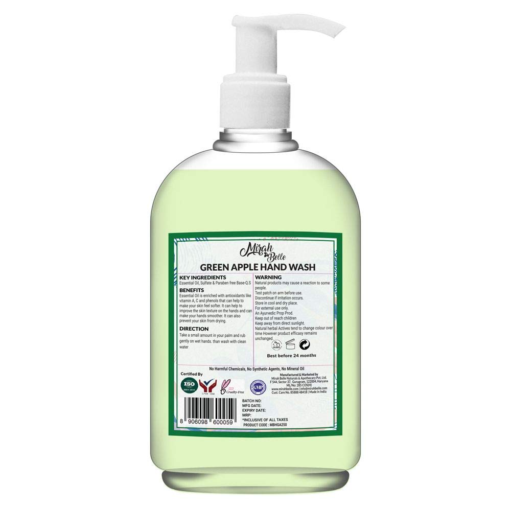 Mirah Belle - Green Apple Hand Cleanser Sanitizer, Hand Wash (Combo) - 500 ML and 100 ML - Kills Bacteria, Virus and Germs - Best for Men, Women and...