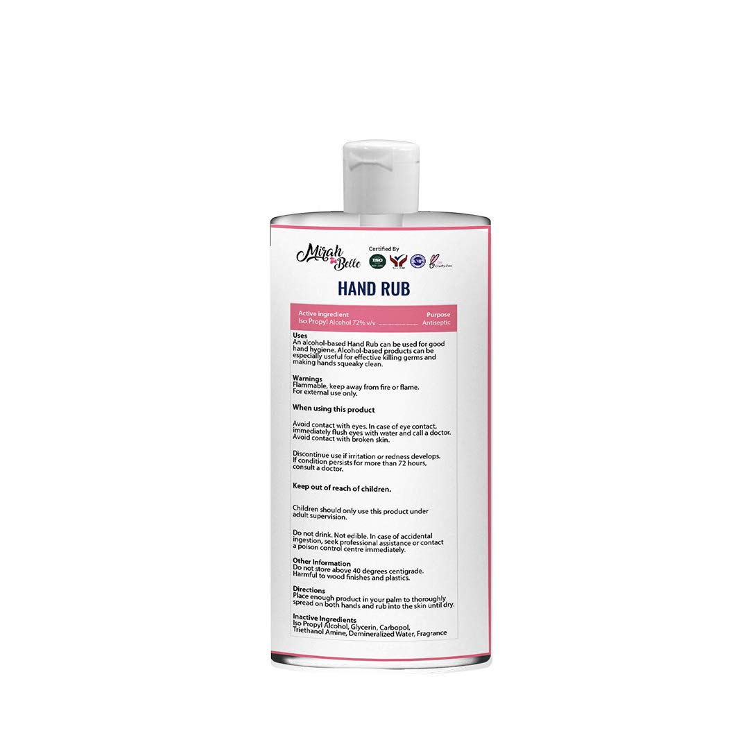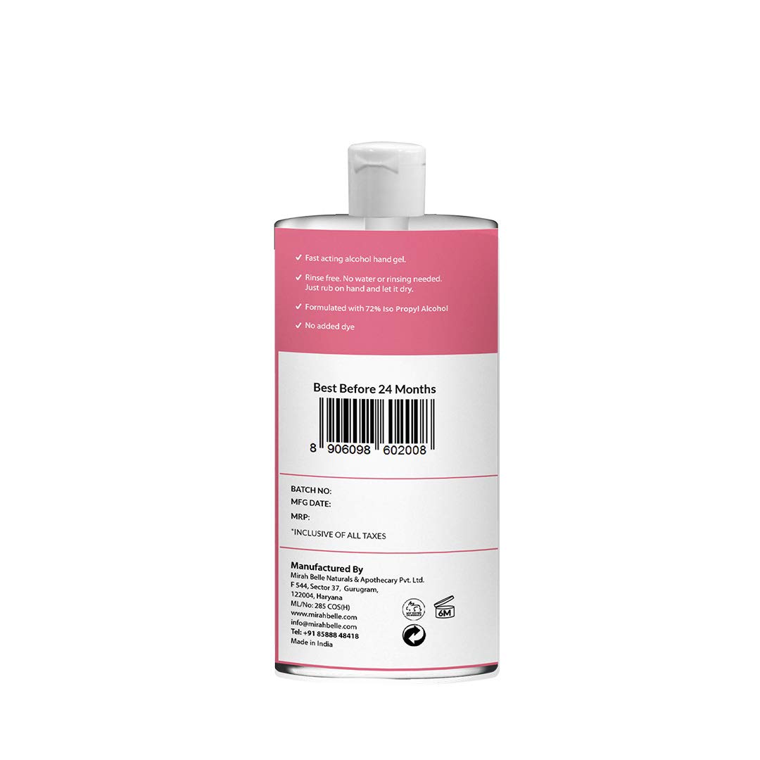 Mirah Belle - Hand Rub Sanitizer Gel - 500 ml - Best for Men, Women and Children - Sulfate and Paraben Free
