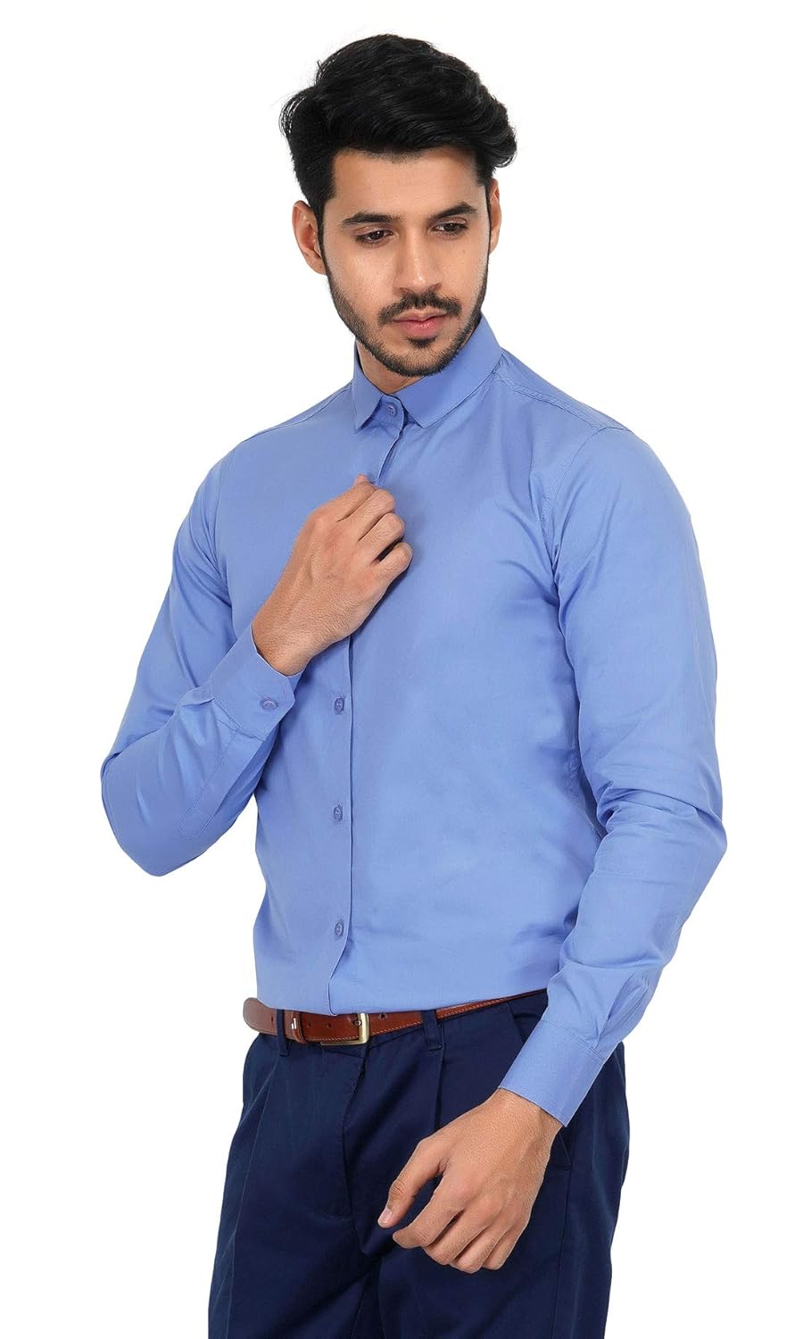 MISHIKACREATIONS Men's Cotton Cutaway Collar Solid Formal Full Sleeve Shirt