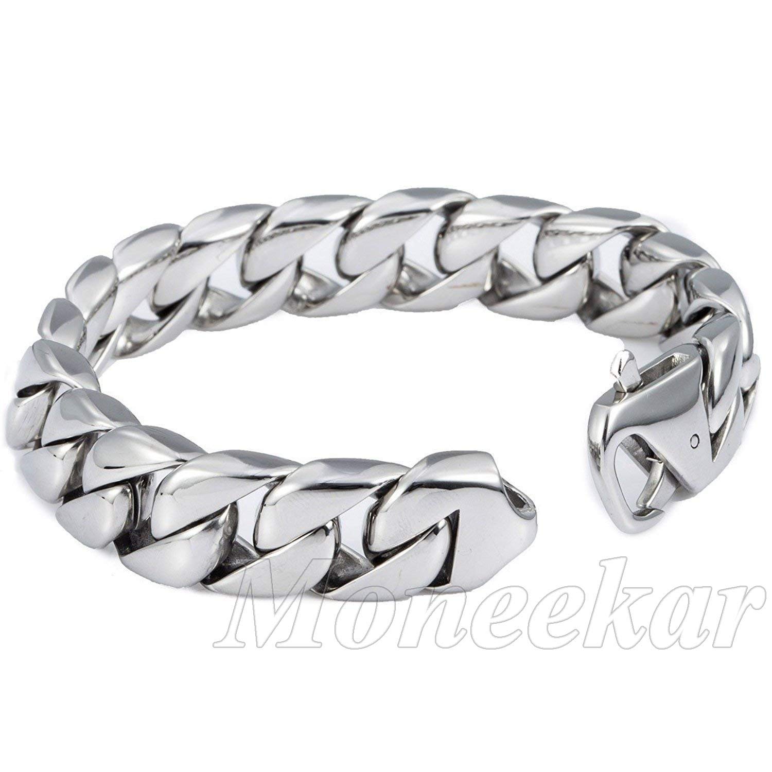 Moneekar Jewels 12mm Curb Cuban Link 316L Stainless Steel Bracelet for Men