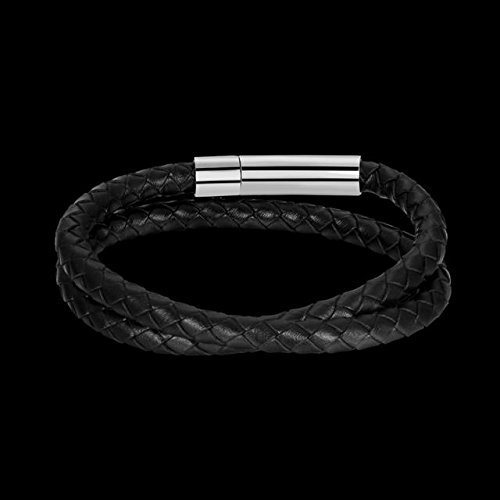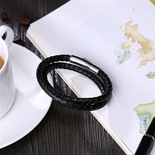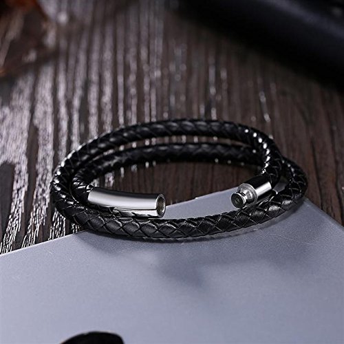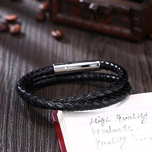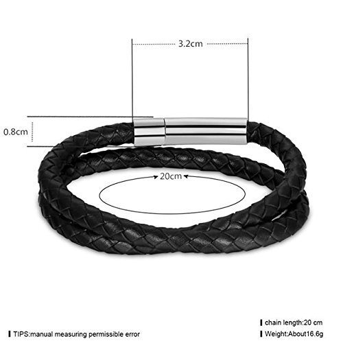 Moneekar Jewels black braided leather bracelet with stainless steel magnetic clasp for men and women material: leather & stainless steel size: length: 20 cm, width: 0. 8cm. Tips: manual measuring permissible error. Weight: 16. 6g. |