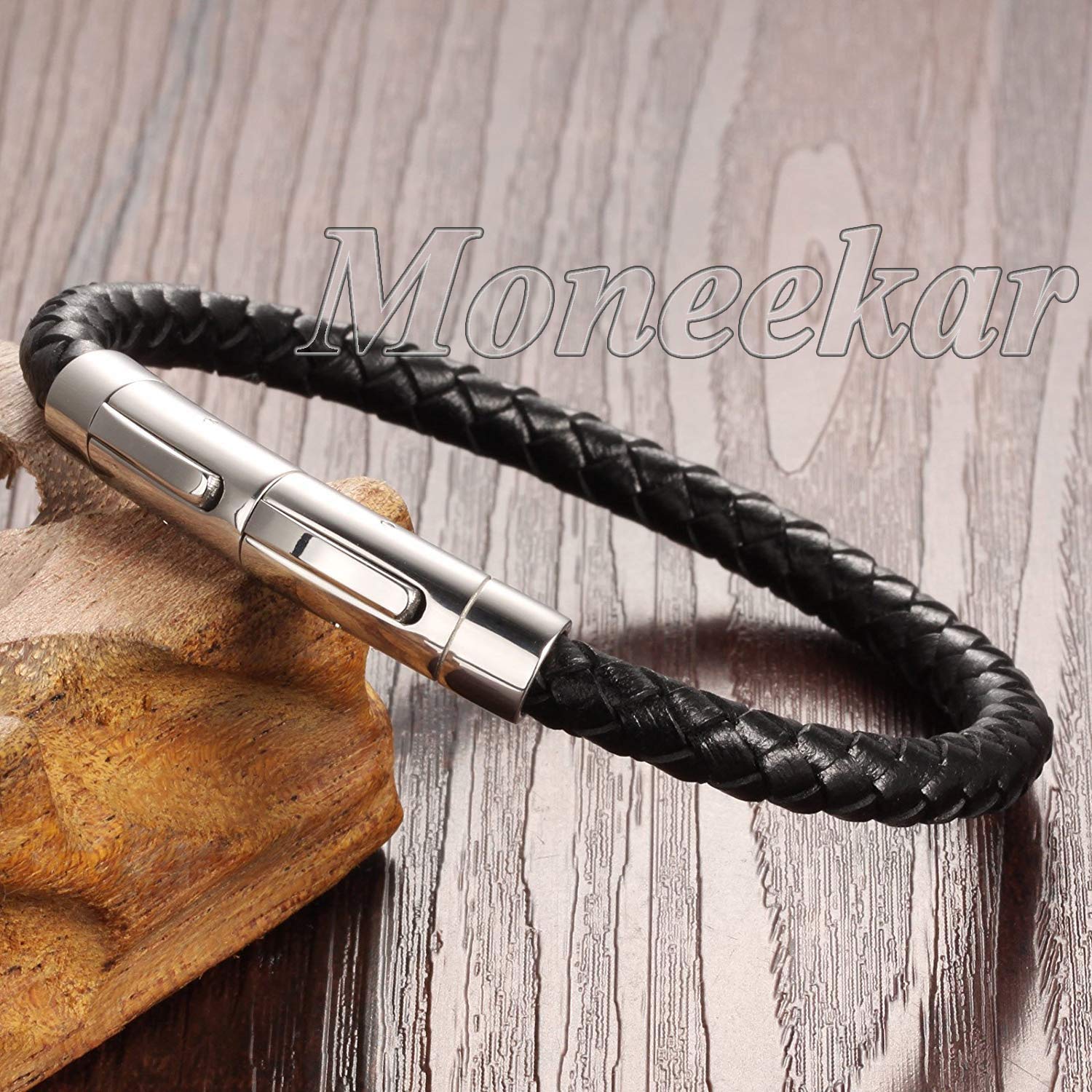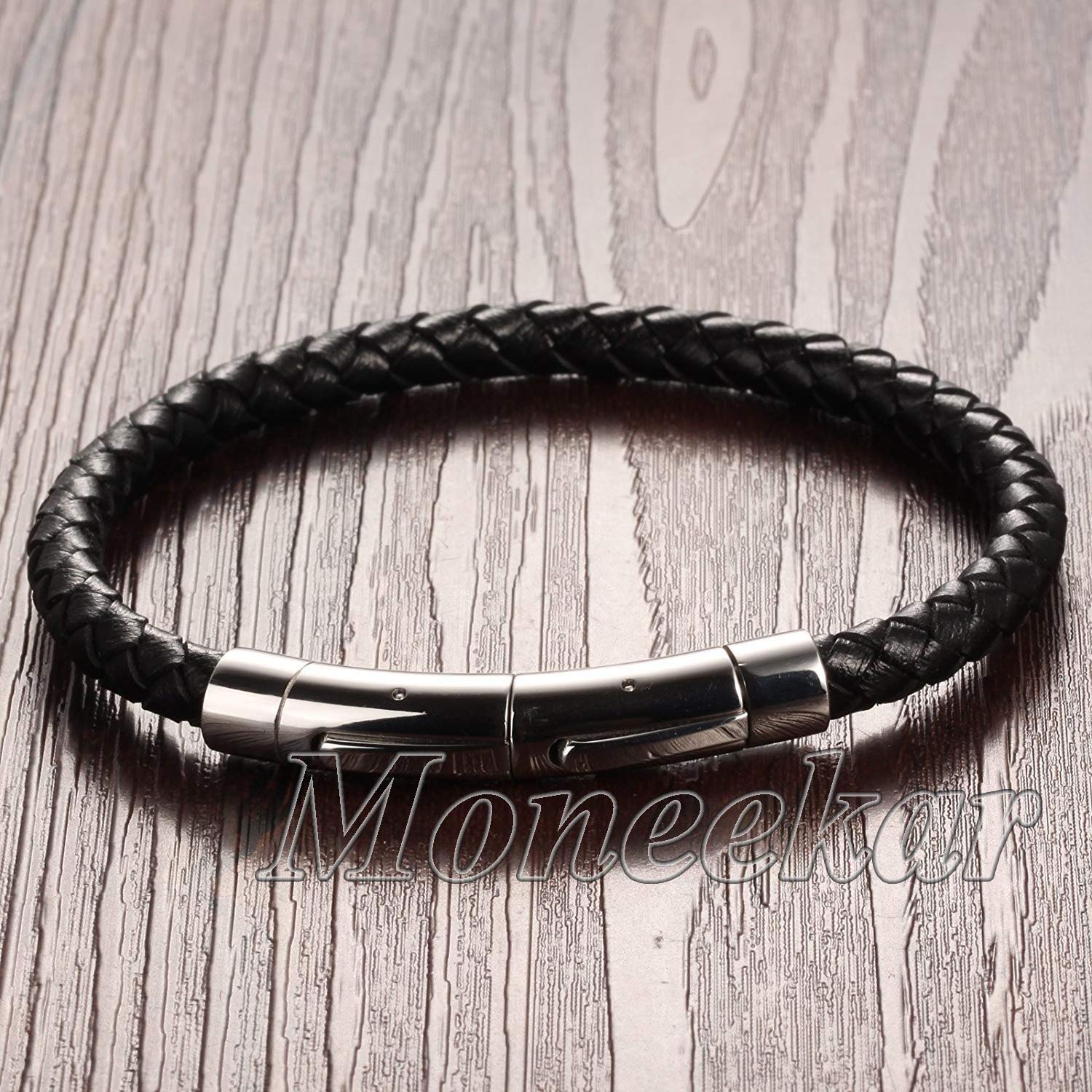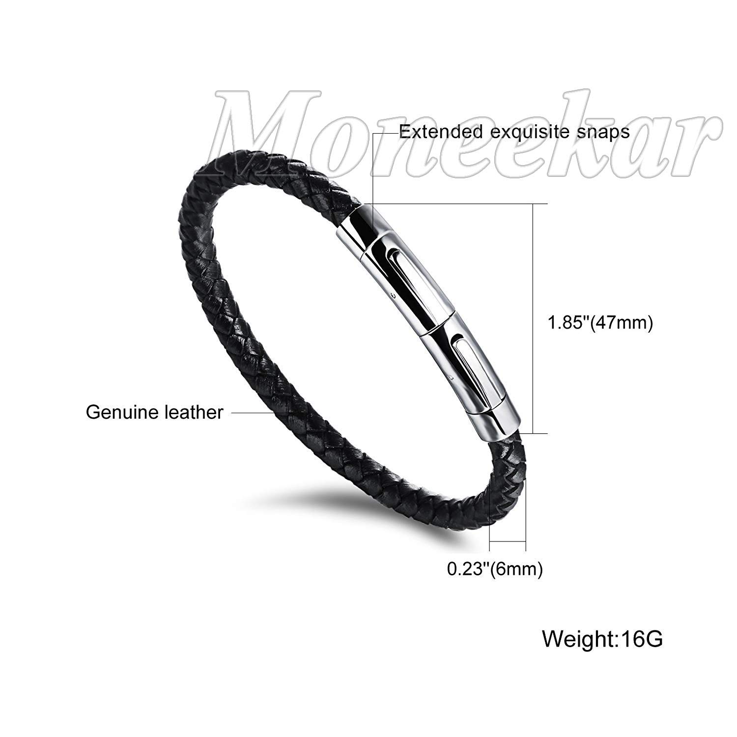 Select the great quality and durable genuine leather, not easy to be damaged. Stainless steel clasp, much easier to use than lobster claw clasp, and make the bracelet firmly. 6mm wide soft braided leather, smooth surface, gives you a comfortable wearing feeling. Suitable for men for any occasion. |