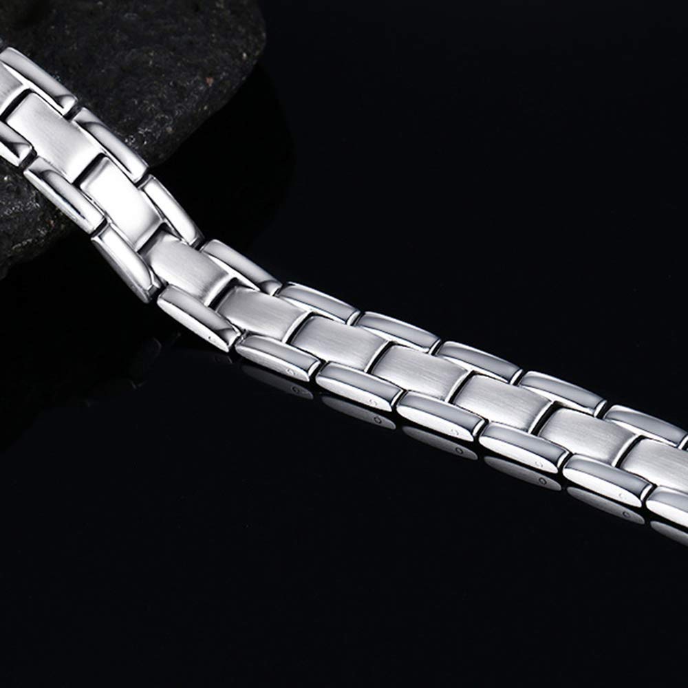 Magnetic stainless steel bracelet by Moneekar Jewels blending elegance with strength, Moneekar Jewels are proud to present this stylish magnetic bracelet. The use of magnetic therapy can be traced back for hundred of years, assisting in the alleviation of arthritic pain, reducing inflammation, and improving blood circulation. It is also used to assist in the reduction of stress, anxiety, fatigue and insomnia. What are the benefits of this Moneekar Jewels bracelet- crafted from stainless steel - a super lightweight yet strong metal. You will not notice the bracelet on your wrist. Stainless steel is stronger than stainless steel but half the weight. Our materials are also hypoallergenic - it will not irritate skin. high strength magnets - our magnets are grade 3000 gauss rare earth neodymium magnets - perfect strength for magnetic therapy. |