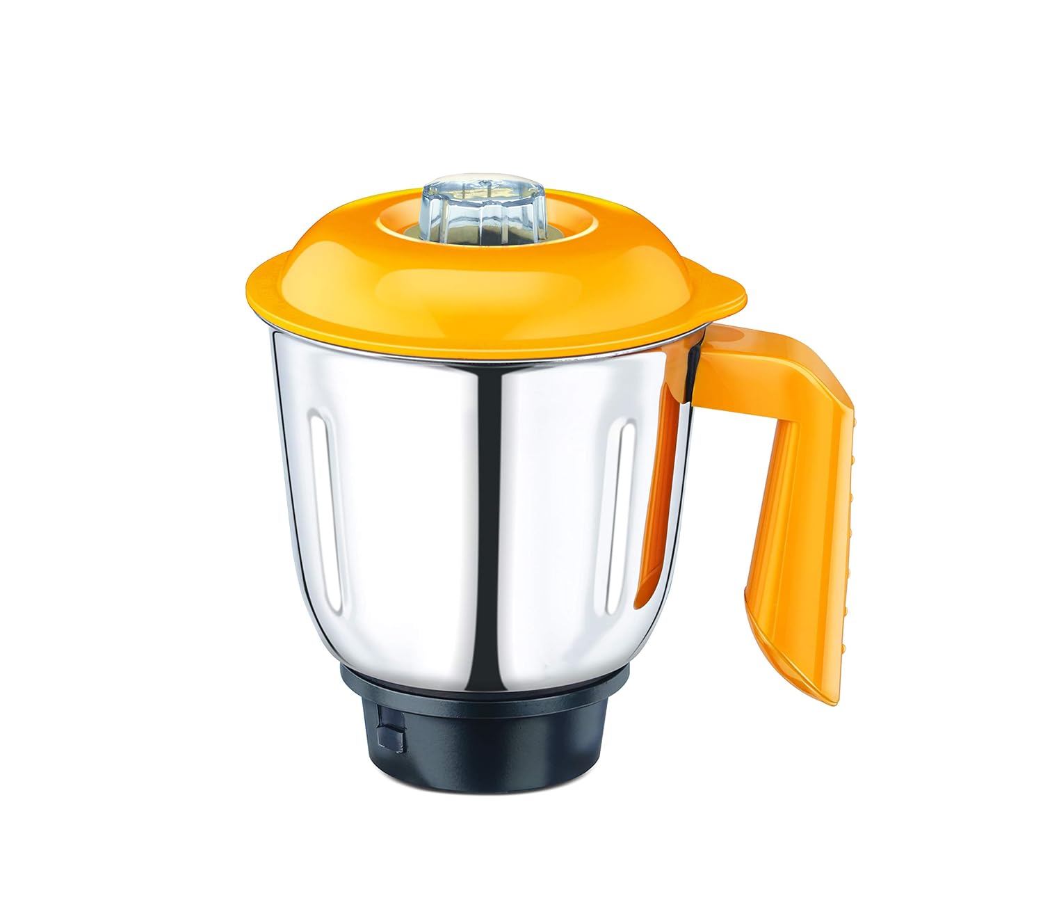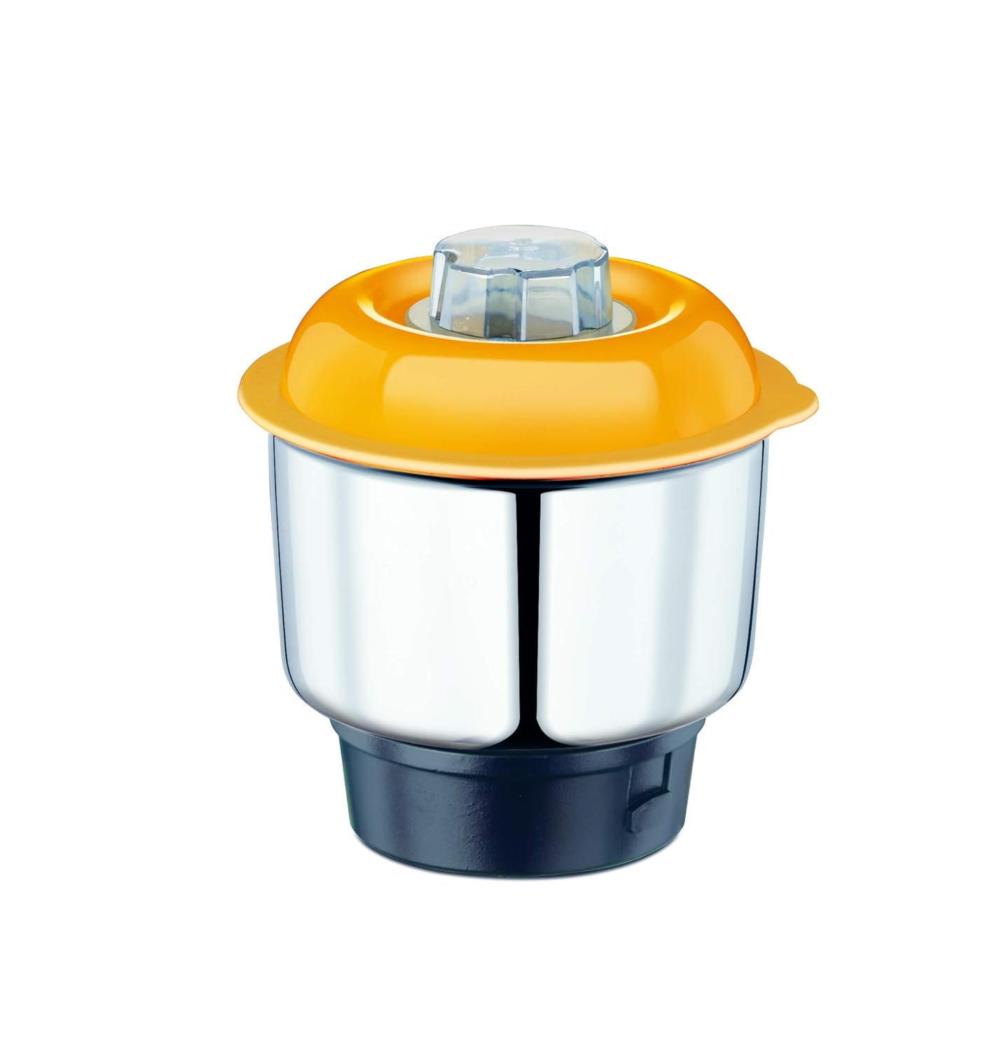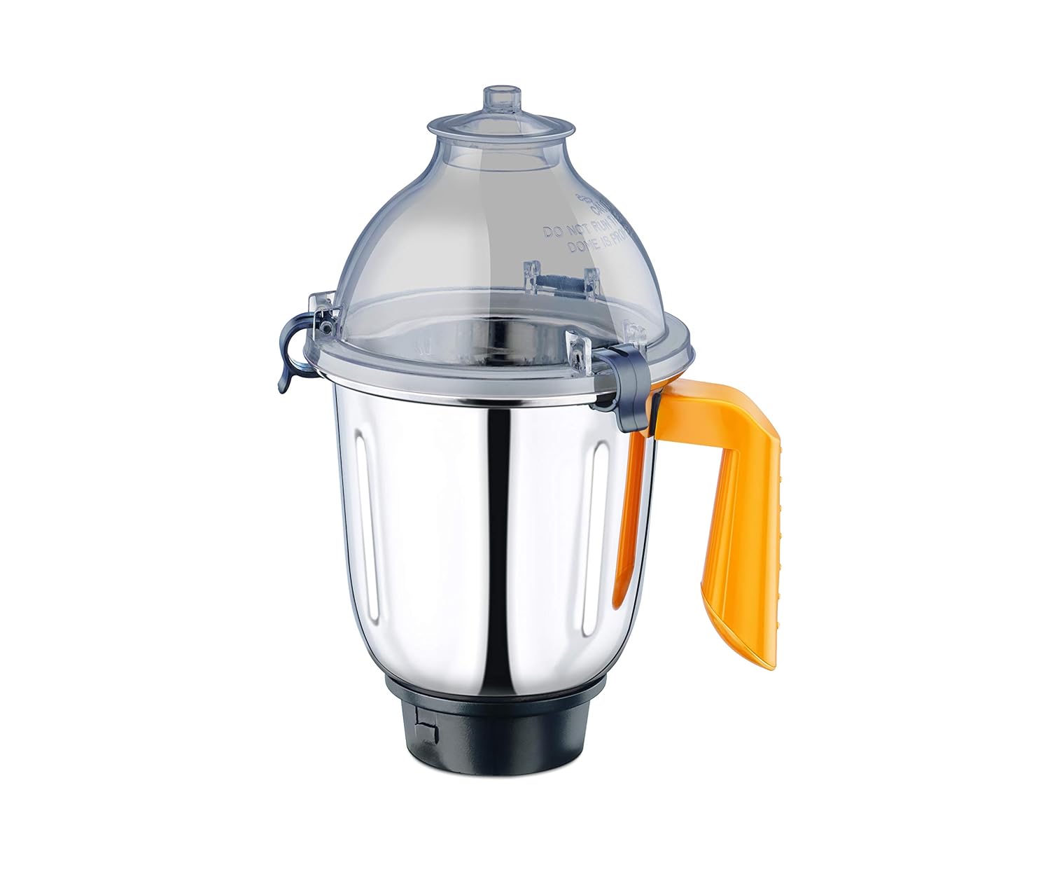 Has 3 dome-shaped polycarbonate jar lids with lid locks for added safety, a 1.5 litre liquidizing jar with a handle, a 1 litre dry/wet grinding jar with a handle and a 400 ml jar for making chutneys