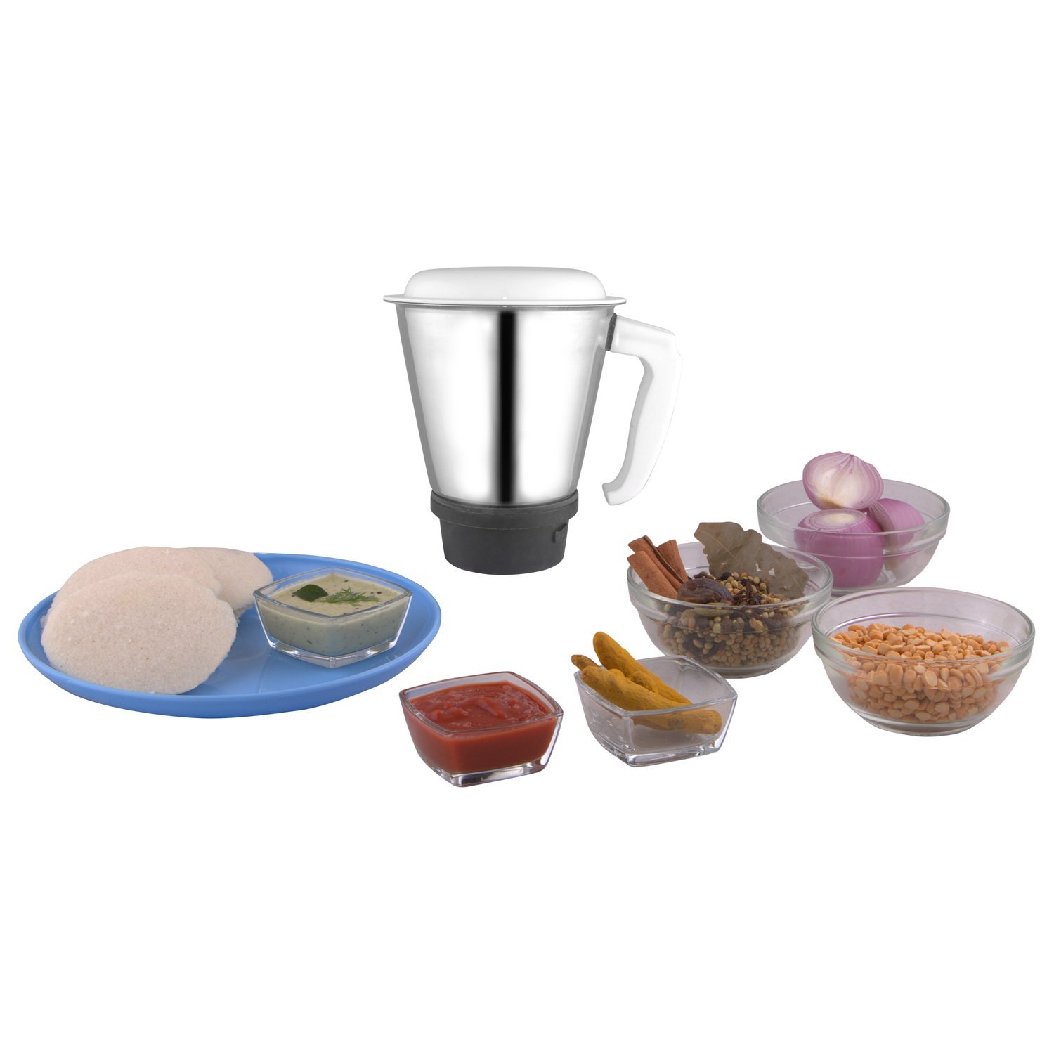 Jar Capacity: Liquidizing Jar (1.5 liter), Wet/Dry Grinding Jar (1 liter) and Chutney Jar (0.4 litre)