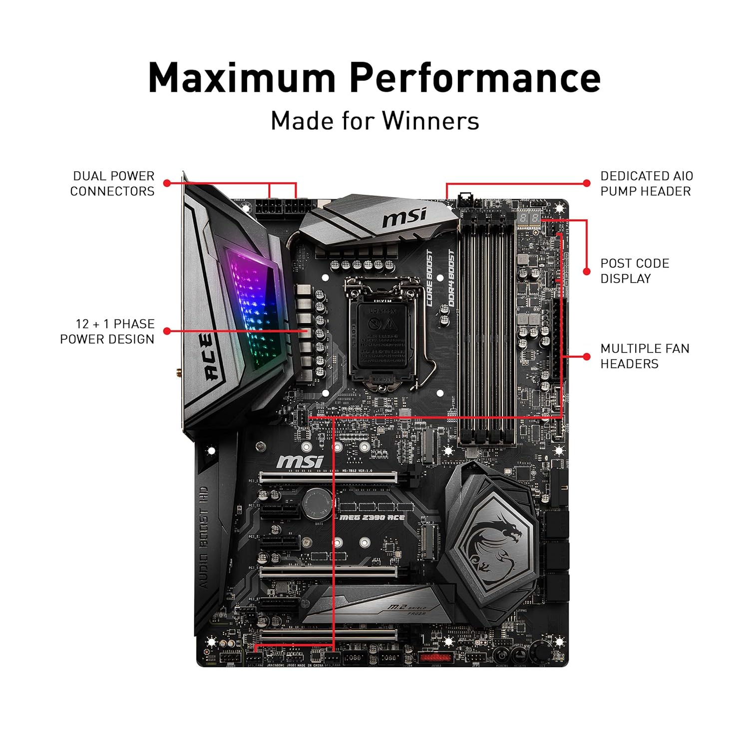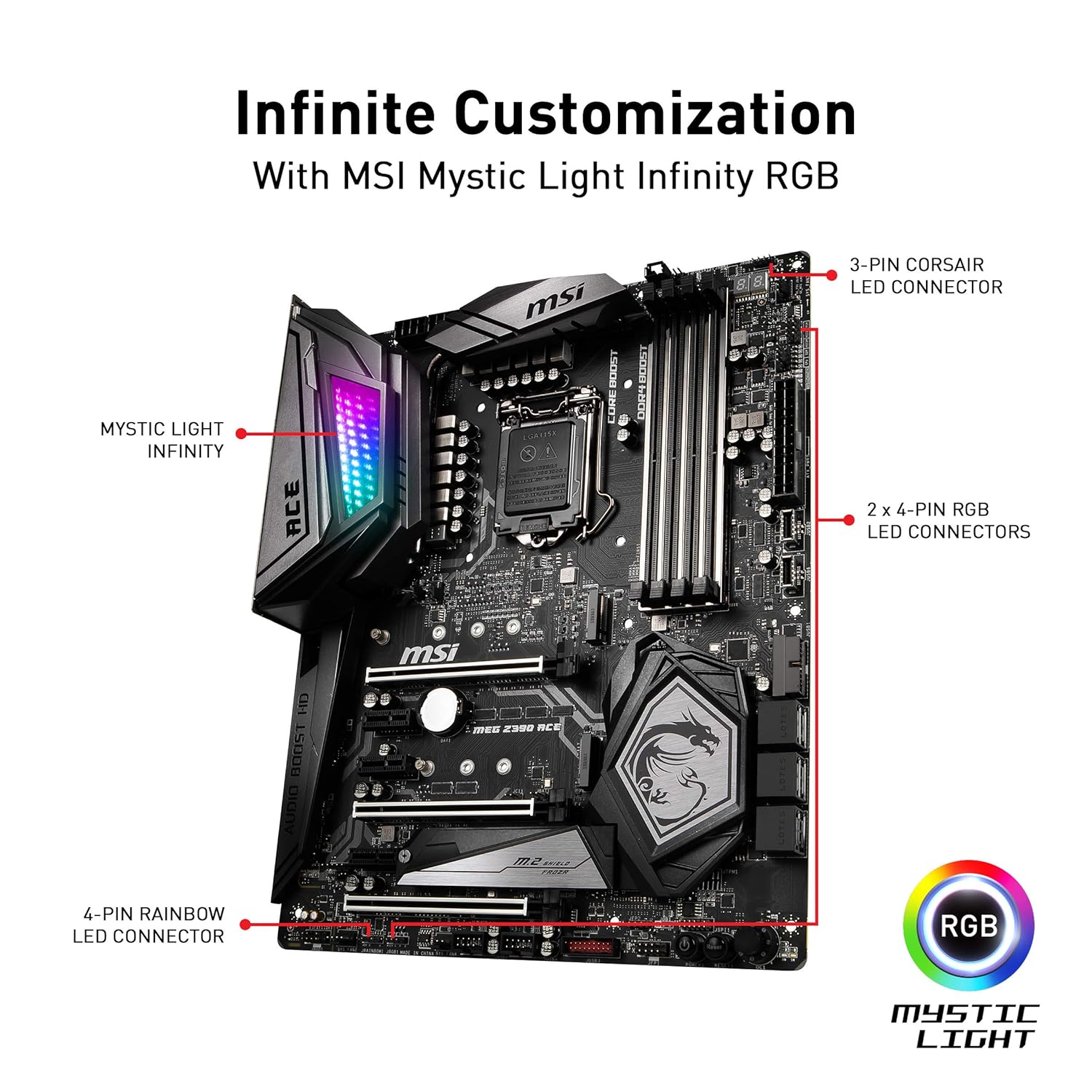MSI meg Z390 Ace LGA1151 (Intel 8th and 9th Gen) m.2 USB 3.1 Gen 2 DDR4 Wi-Fi SLI CFX ATX Z390 GAMING motherboard. With a unique look and feel, packed with exclusive gaming features, MSI enthusiast Gaming motherboards offer the best possible gaming experience. Customize and set up your own color scheme with MSI Mystic Light utility. Select the available colors from the palette to match your system style. Bored of the same colors? Simply change the complete look of your system in 1 second! Cooling your PC is essential for reliable performance. We've made sure to include enough fan Headers with full control to allow you to cool your system any way you want. |