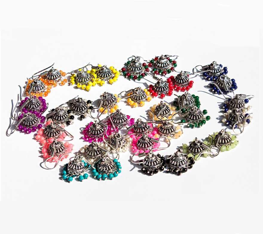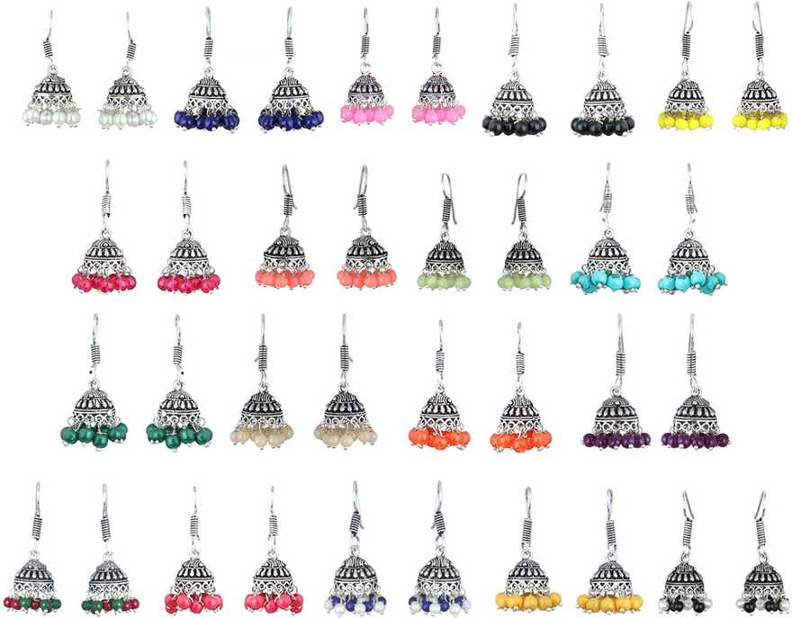 Multi-color Silver-Plated 18 Jhumki Combo Earrings |