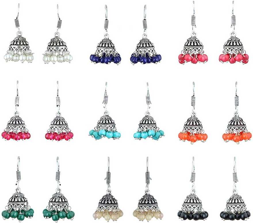Multicolor Silver-Plated Combo Of 9 Jhumki Earrings |