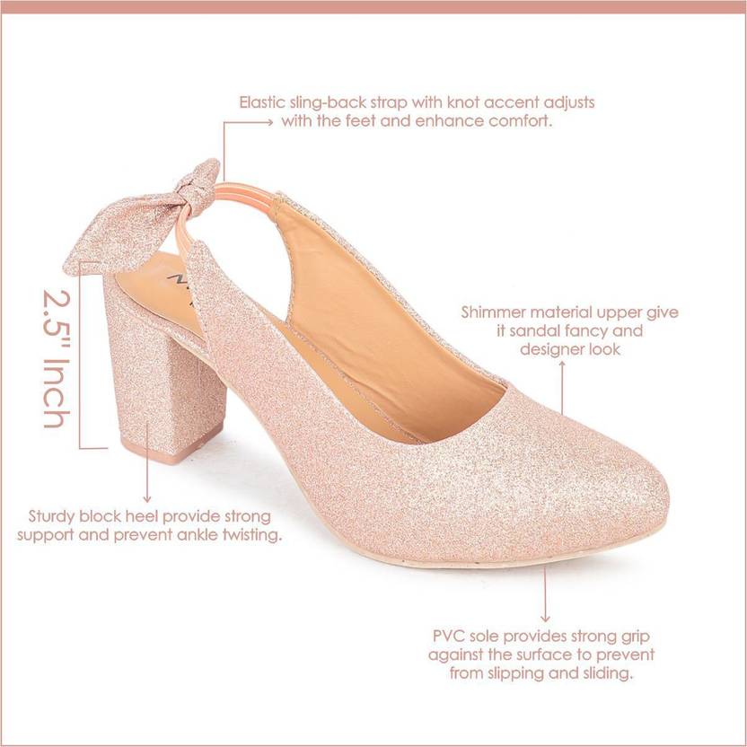 This pair of block heel sandals are made on PVC soles and for the upper shimmer material fabric has been used. The shimmering upper gives the pair casual wear and a fancy look to your feet making this pair an appropriate choice for casual events. The lining of this pair is done using synthetic material to give a soft surrounding to your skin and thus prevent it from damaging.