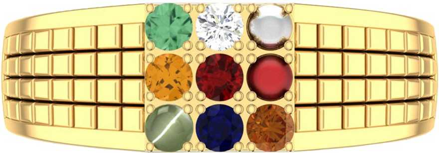 Model Name: Navratan Gold Plated Panchdhatu Ring 9 Gemstone Unisex Ring