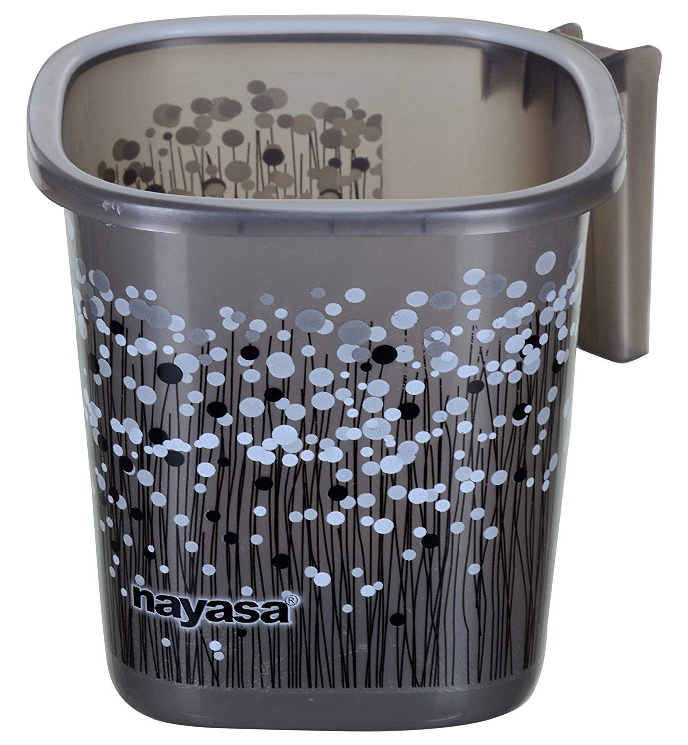 Nayasa Strong & Stylish Plastic Square Funk Bucket with Matching Funk Mug and Matching Funk Patla, Set of 3 (25 liters, Grey/Black, 3-Pieces Set