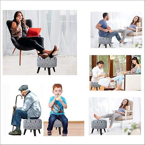 GOOD HEIGHT & COMFORTABLE WOODEN PRINTED STOOL FOR LIVING ROOM : Nestroots Puffy Stool looks perfect in a living room setting, the versatile printed design Navy blue colour or good height goes well with both modern & traditional interiors. Superior quality of raw materials and thiker cushion that have been used used make the Ottoman long lasting & durable.