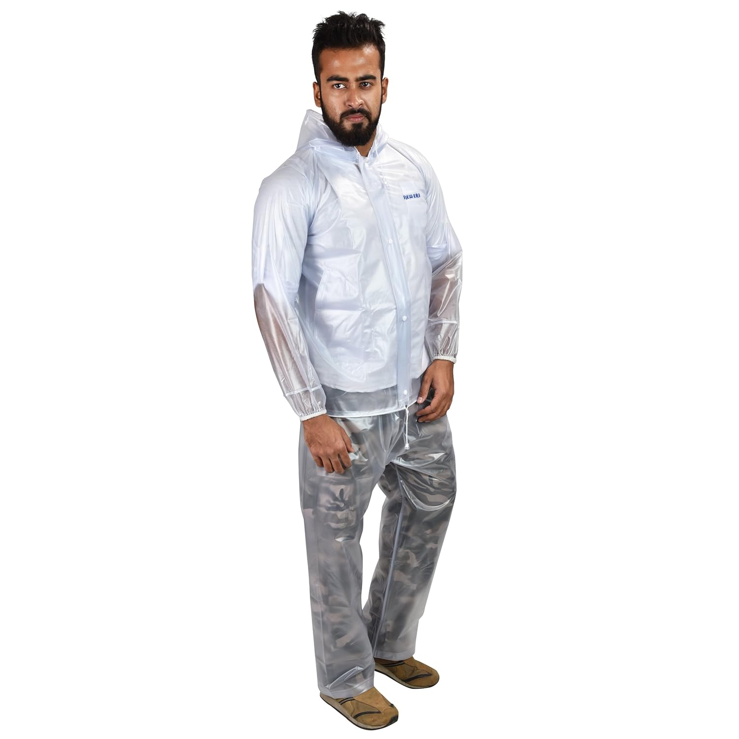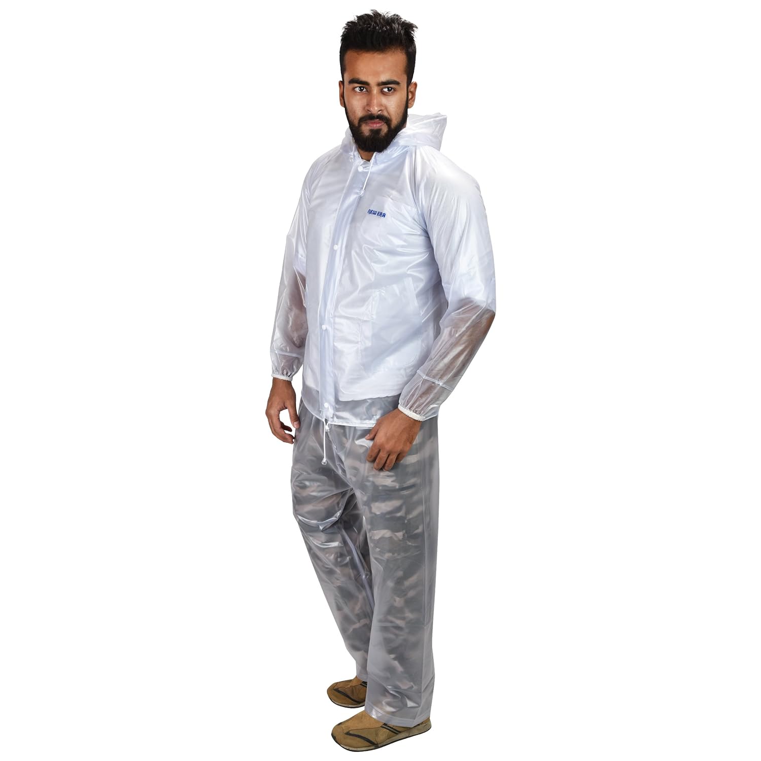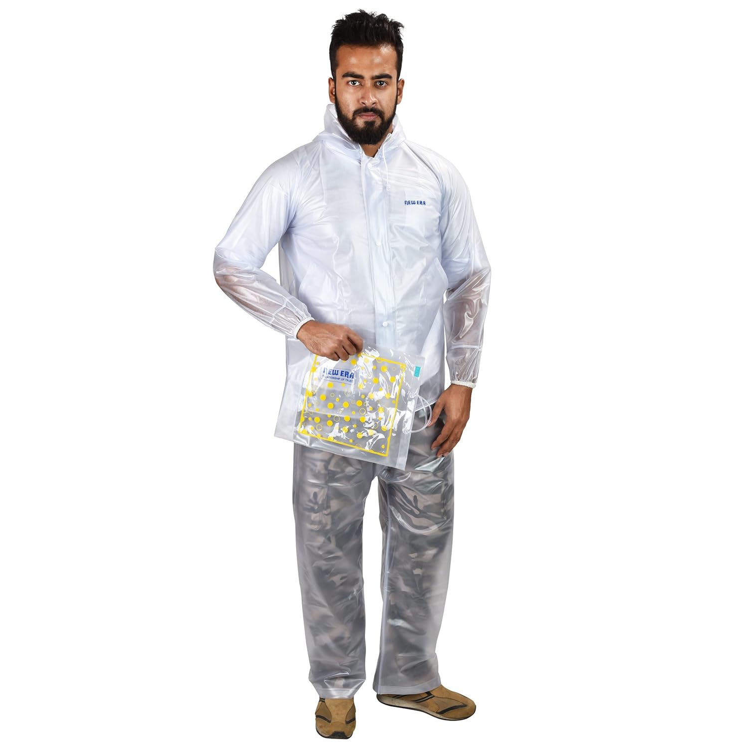 THE New Era raincoats are 100% waterproof, made of the highest durable sturdy quality light-weight & breathable PVC that used in rainwear products. Two Side pockets, so that your valuable watches and mobile phones are safeguarded. Very Comfortable while travelling. Shirt with cap , comes with a free pouch. Rain Coat is made of 17.5 gauge PVC. The main feature of this material is its super softness that remain same seasons over seasons. It will never get harder or rough like plastic or thin PVC made rainwears. The stitching and pasting Technic of New Era is updated that makes the products ultimate durable and strong. --------1) Its very soft that you feel comfort ever after many hours wearing it. That is why its very perfect for riders, bikers, especially long route bikers. ----------2) Its surprisingly strong that it is perfect for the open air workers like engineers, electricians, construction workers and others who need to work even during rainfall. --------- 3) The look is so elegant and formal that it is also perfect for marketing personnel, students, teachers, doctors, lawyers and other professionals who need to dress up with sophistication. -----------*Care: rain coats Neck Style : Hooded waterproof raincoats for men best bike light weight mens suit Avoid Exposure to direct sunlight for long, After use, let it dry in air and keep it in a bag. Try to keep in airtight condition after use; *** Be aware of duplicate products made of plastic, polythene or thin PVC products that look same |