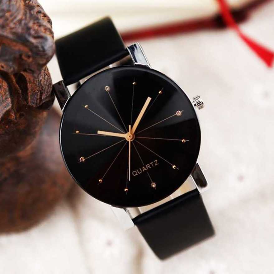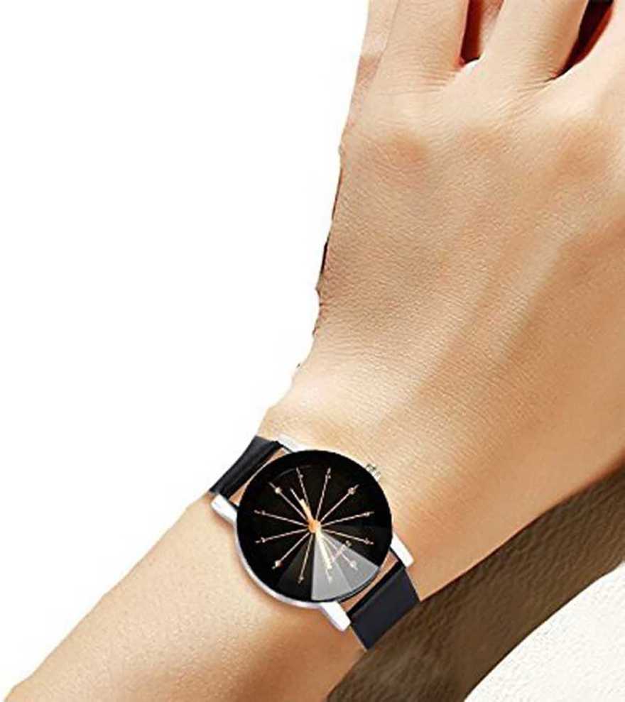 New Stylish Prizam Black Glass Leather Belt Watch For Girls |