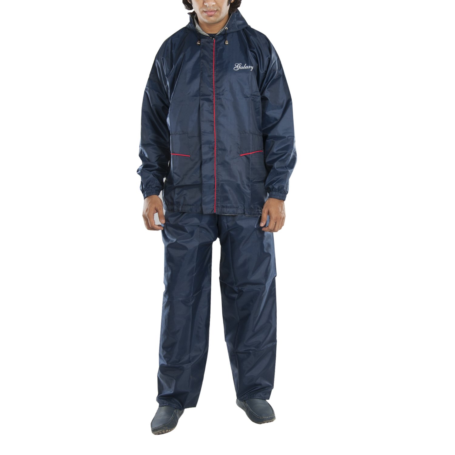 Stay dry and warm in rain by wearing this raincoat, which has been crafted from polyester.