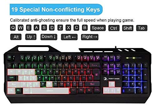 Night Hawk NK102 FPS Gaming Keyboard with 3 Colour Static LED & 19 Anti-Ghosting Keys (METALLIC SERIES), Black. Designed specifically for Gaming, Night Hawk will give you speed and responsiveness like never before.Night Hawk NM101 FPS Gaming Mouse with Colorful RGB Breathing Backlight, 8 Customizable Buttons and upto 3200 DPI (Metallic Series), Black. Whether you want to operate in Stealth Mode or go all out on a Killing Spree, there is a DPI for every strategy. We provide you with four on-the-fly adjustable DPI which can be changed according to your preferences and provides you with greater accuracy. Night Hawk NM101 Gaming Mice has been optimized to execute your lift-offs with deadly precision with a lift-off cutoff distance of 2.2 mm. Rigorously tested with a wide range of hand shapes, sizes and grip types and amended to reduce stress on your fingers. The button placement and the curves were created to fit snugly with your hand. Night Hawk Gaming Mice gives you an extremely comfortable gaming experience and reduces stress on your fingers even during long gaming hours. Suitable for Right Hand Users. In an age which require quick twitch reflexes, your mouse needs to be able to accurately translate those actions into onscreen movement. NM101 boasts of a 3200 DPI Optical Sensor capable of withstanding extremely high movement speeds. It comes with a Polling rate of 125 Hz delivering a Response Rate of 8 ms, allowing you to enjoy peak performance.The 8 programmable buttons can be customized as per your requirement to suit your gaming or data inputting need using our Software. You need not take the longer way out to execute your commands as these eight programmable keys offer you an enhanced calibration with your games, typing and multiple functionalities. It also comes with an anti-skid roller which offers you better grip and control. The keys have an extended durability up to 5 million clicks. Night Hawk Gaming Mouse comes with a Colorful RGB Breathing Backlight whi |