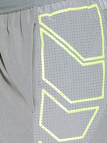 A pair of grey knitted shorts, features Stay Cool technology, has two pockets, an elasticated waistband with inner drawstrings