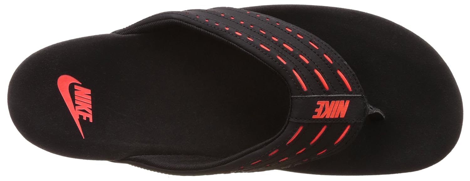 This uniquely designed flip flops from the house of Nike gives you the comfort and stylish look. It is made of PU material. This slipper features rubber sole with slip on closure type and comes in black and red color. |