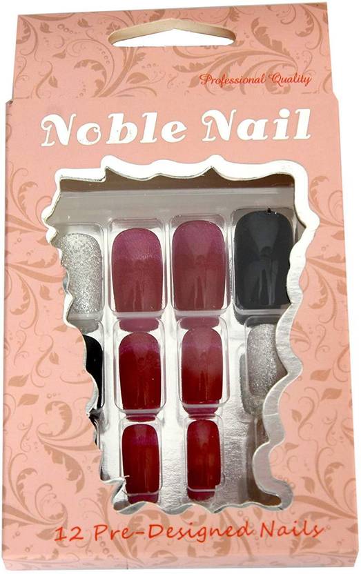Noble Plain Artificial Nails With Gum Inject Multicolor (Pack of 1)