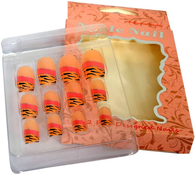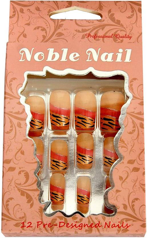 Noble Plain Artificial Nails With Gum Inject Multicolor (Pack of 1)