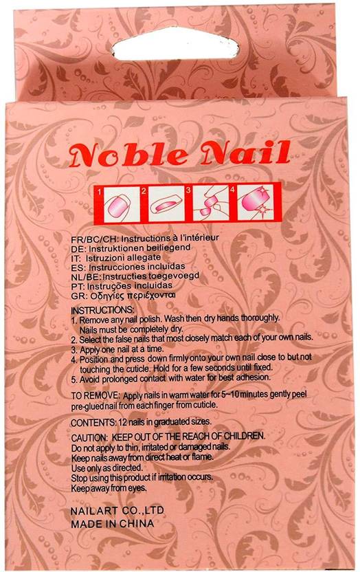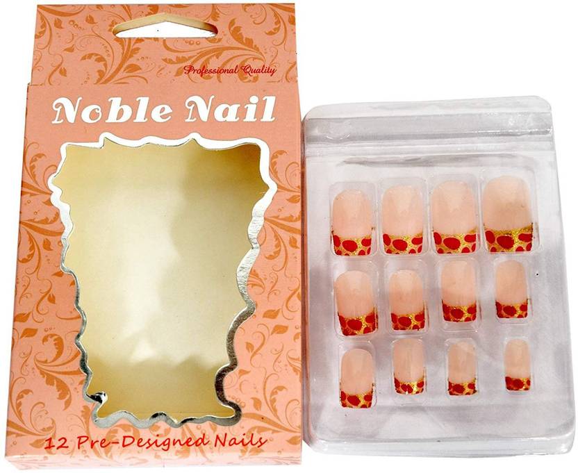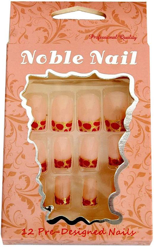 Noble Plain Artificial Nails With Gum Inject Multicolor (Pack of 1)