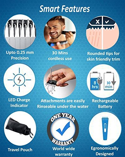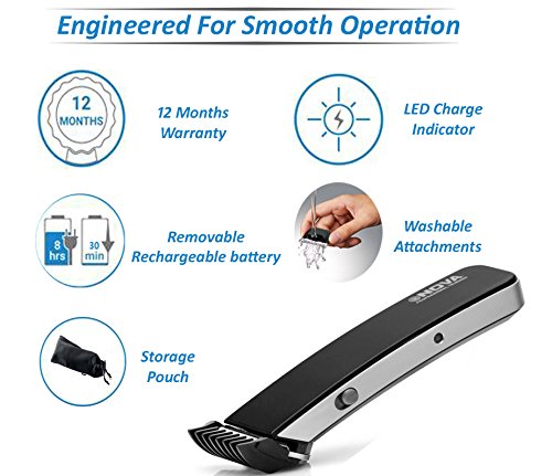Say good-bye to cumbersome razors and expensive salons. The Nova trimmer with its efficient and silent motor, offers a salon-style trim, always. It comes with stainless-steel, skin-friendly blades and comb tips, for the best shaving experience. not only that, this trimmer also offers up to 0.25mm close shaving experience. Equipped with a lightning-fast rechargeable battery, which when fully charged, provides up to 35 minutes of usage. |