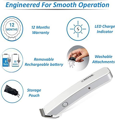 This cordless trimmer from Nova is a stunning piece. Grab this trimmer and enjoy hassle-free grooming experience at home. Easy to Use This trimmer ensures ease of use, thanks to its ergonomic design. So look dashing and trim your beard and your underarms and be party-ready always. A Must-Have Grooming Kit This trimmer is not just a device used for trimming. It comes with a number of other attachments which will ensure that you look groomed. Its stainless steel blade and free floating head will give you a complete and clean trim without cutting or damaging your skin. Rechargeable Whether you are at home or holidaying, with this trimmer in handy, you don’t have to worry about looking shabby as this trimmer is rechargeable and can be carried along with you wherever you. |