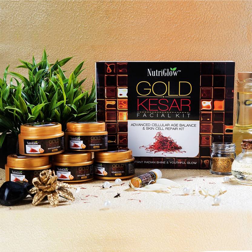 NutriGlow Gold Kesar Facial Kit (250+10)g Makeup Kit (Set of 4)