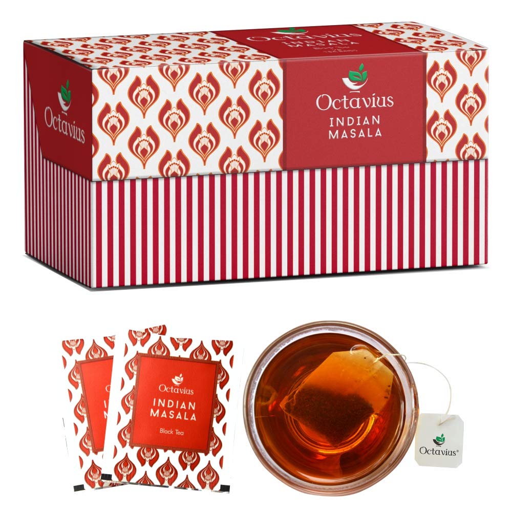 Octavius Indian Masala Black Tea, 32 Enveloped Bags (Pack of 2)