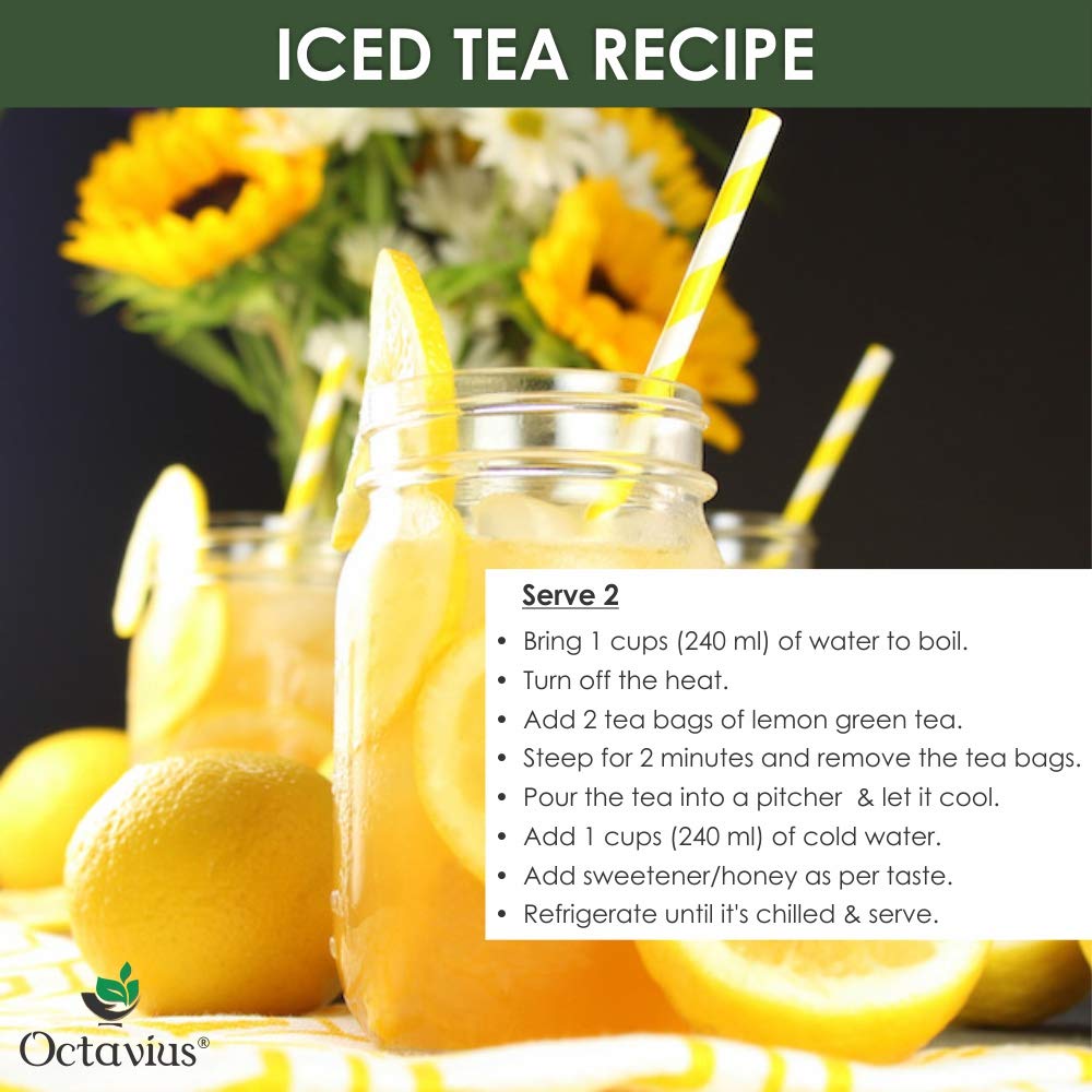 TEA EXCLUSIVELY CHOSEN BY VETERAN TEA TASTERS - Breathe in the healthy and energizing aroma of on all natural caffeine free tea with Octavius Lemon Green Tea.This citrus ancient infusion is a harmonious blend of mild green tea and natural lemon extract and has transcended time gracefully giving you the perfect lemony freshness in all the seasons .