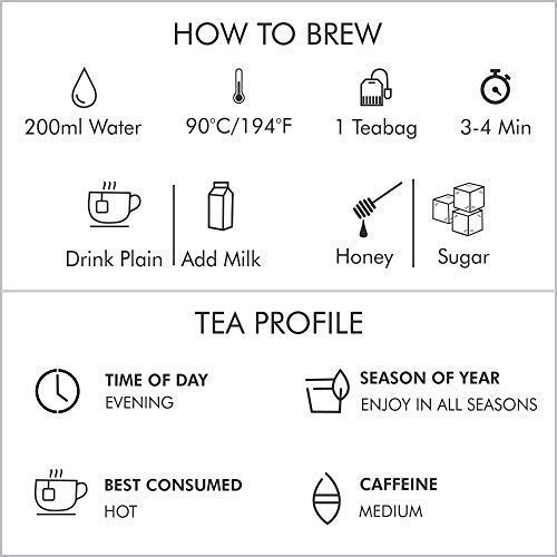 E to brew - enjoy the most delicious cup of tea with absolute ease, just dip in a cup of 180ml hot water (95 degree celsius) and steep for 4 - 5 minutes