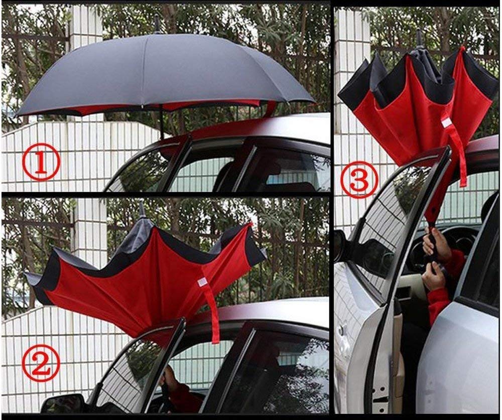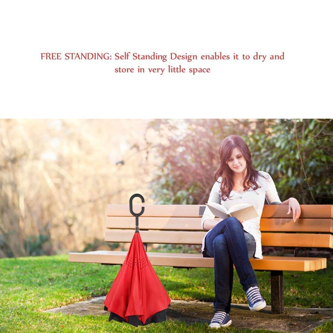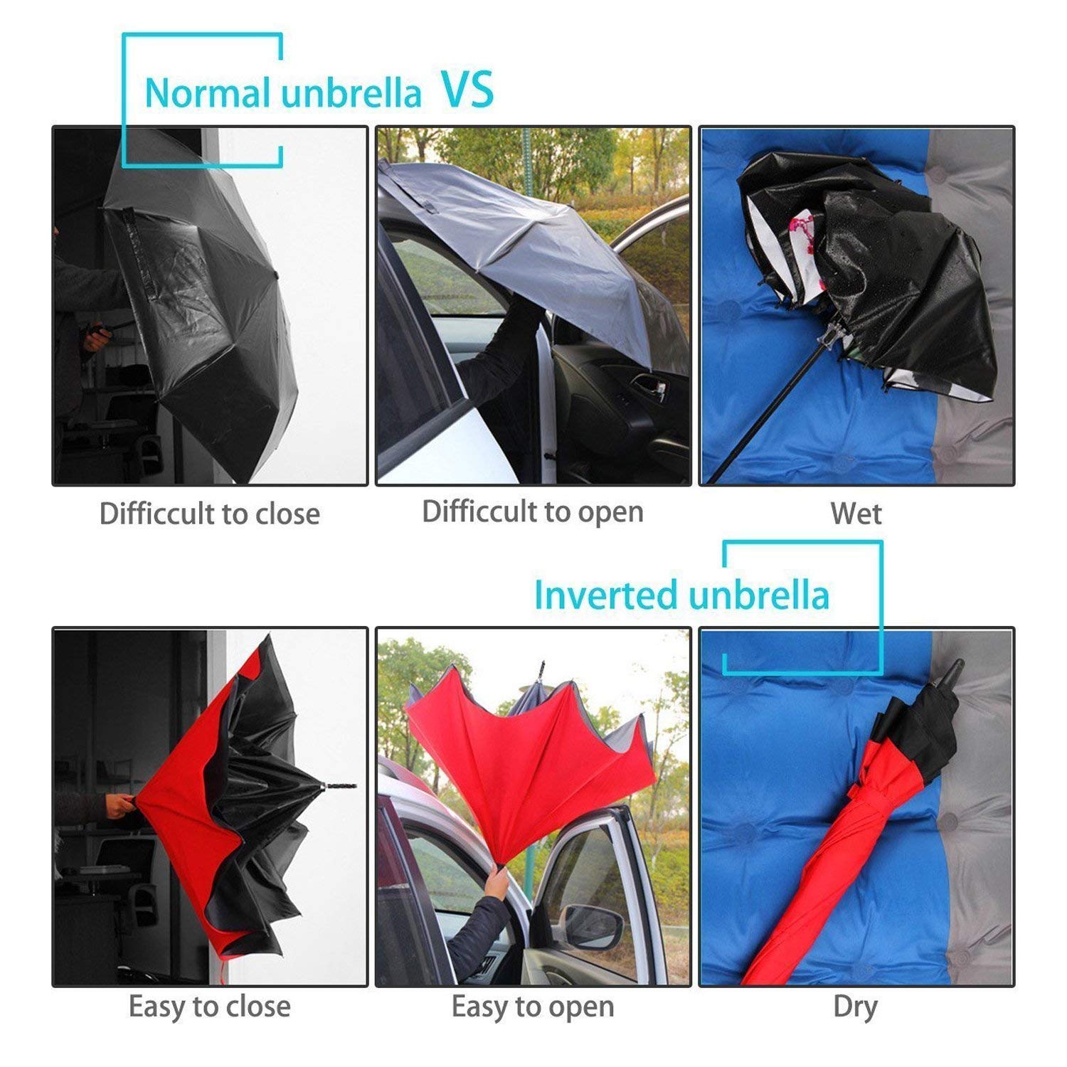 Double protection: the double layer inverted umbrella has double effect in blocking sunrays, giving you a double protection against sun, wind and rain. 2. The double layer inverted umbrella made of: pongee cloth, durable black electric ribs and double layer ribs make umbrella more sturdy, enhance its windproof effect. 3. Unique design of double inverted umbrella,inside-out design prevents waterfrom dripping, keeping floors and cars dry. 4. With a simple click of the embedded button, you can open and close the umbrella in confined spaces when entering or exiting a building or car and it's less awkward and more safer to open and close when in crowds, since the danger to poke in people's eyes has been removed by the design. Package Contents: 1 * Inverted umbrella with C-shaped Handle |