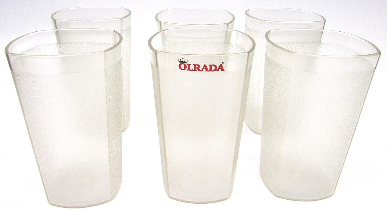 Olrada Food Grade Unbreakable 300ml Drinking Glasses Set of 6 Pcs (Transparent Assorted Design))