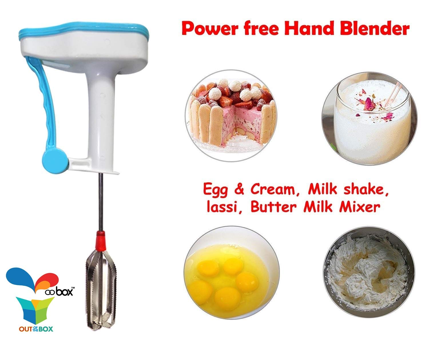 OOBOX Plastic Powerless Hand Blender (Multicolour)
