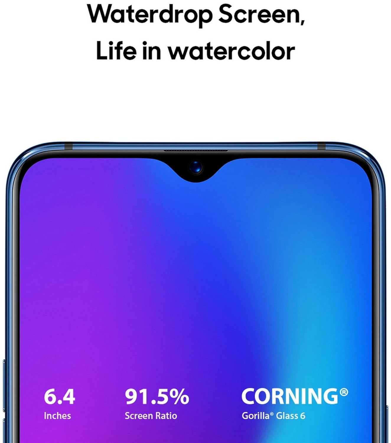 16.2 centimeteres (6.4-inch) full HD+ OLED capacitive touchscreen with 2340 x 1080 pixels resolution, 402 ppi pixel density and 16M color support