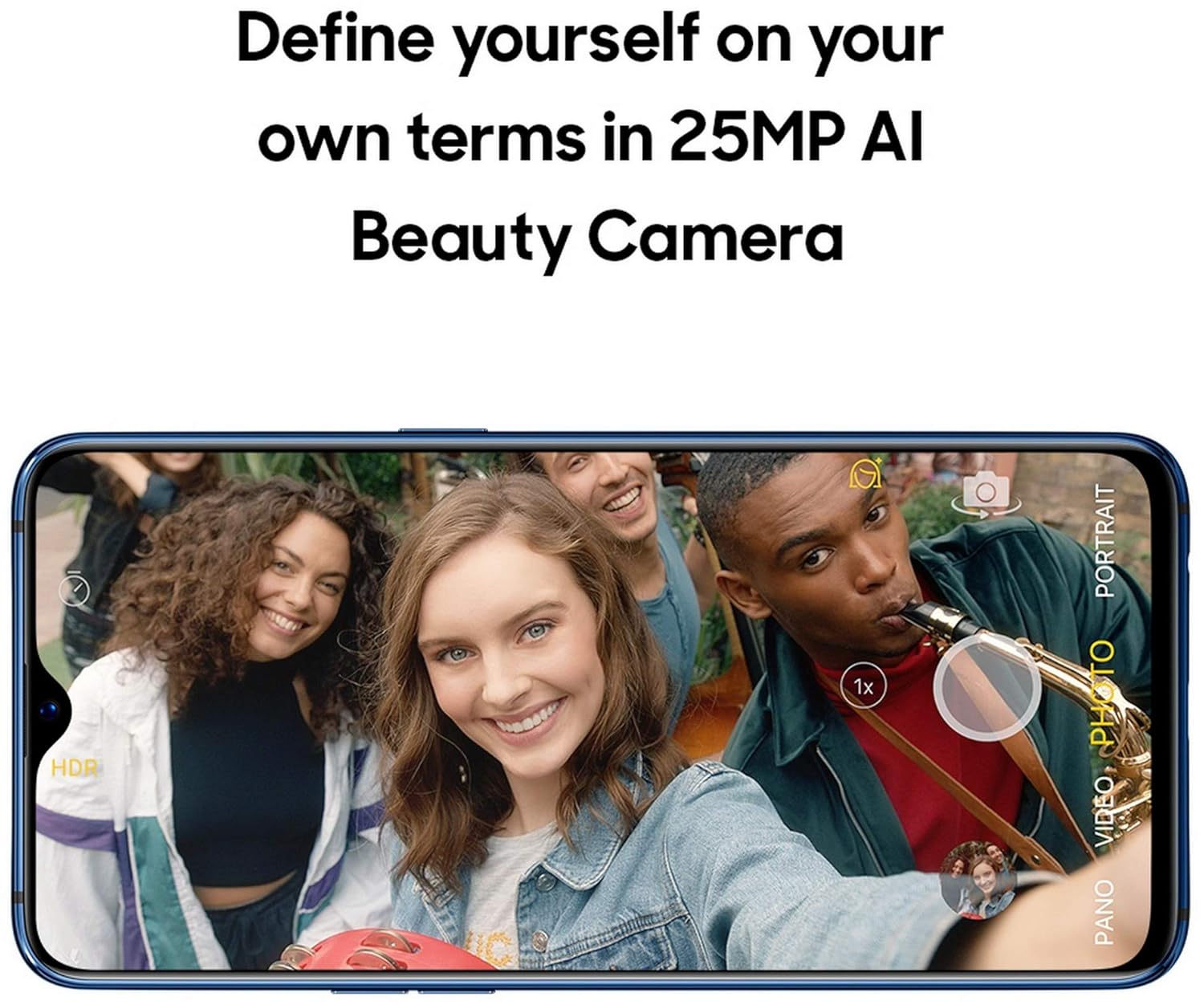 16MP+5MP dual rear camera with 3D portrait lighting, Emoji, Custom Beauty, AI backlight, Ultra night mode | 25MP front facing camera