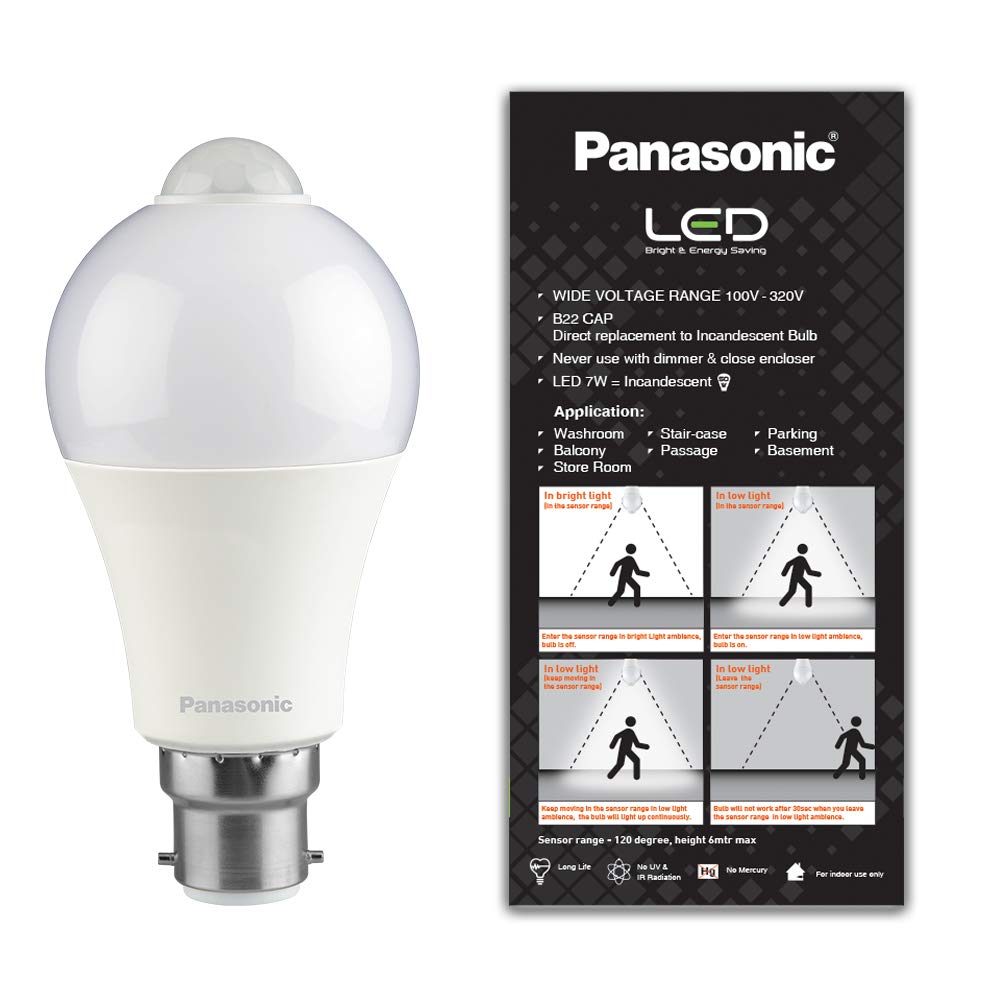 Panasonic PIR Round Base B22 7-Watt LED Bulb (White)