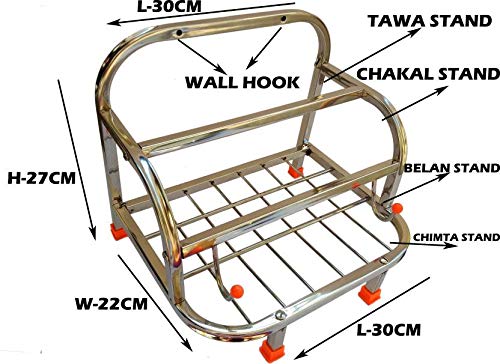 Parasnath Stainless Steel 4 in 1 Square Chakla Belan Stand with Tong Chimta Holder Made in India