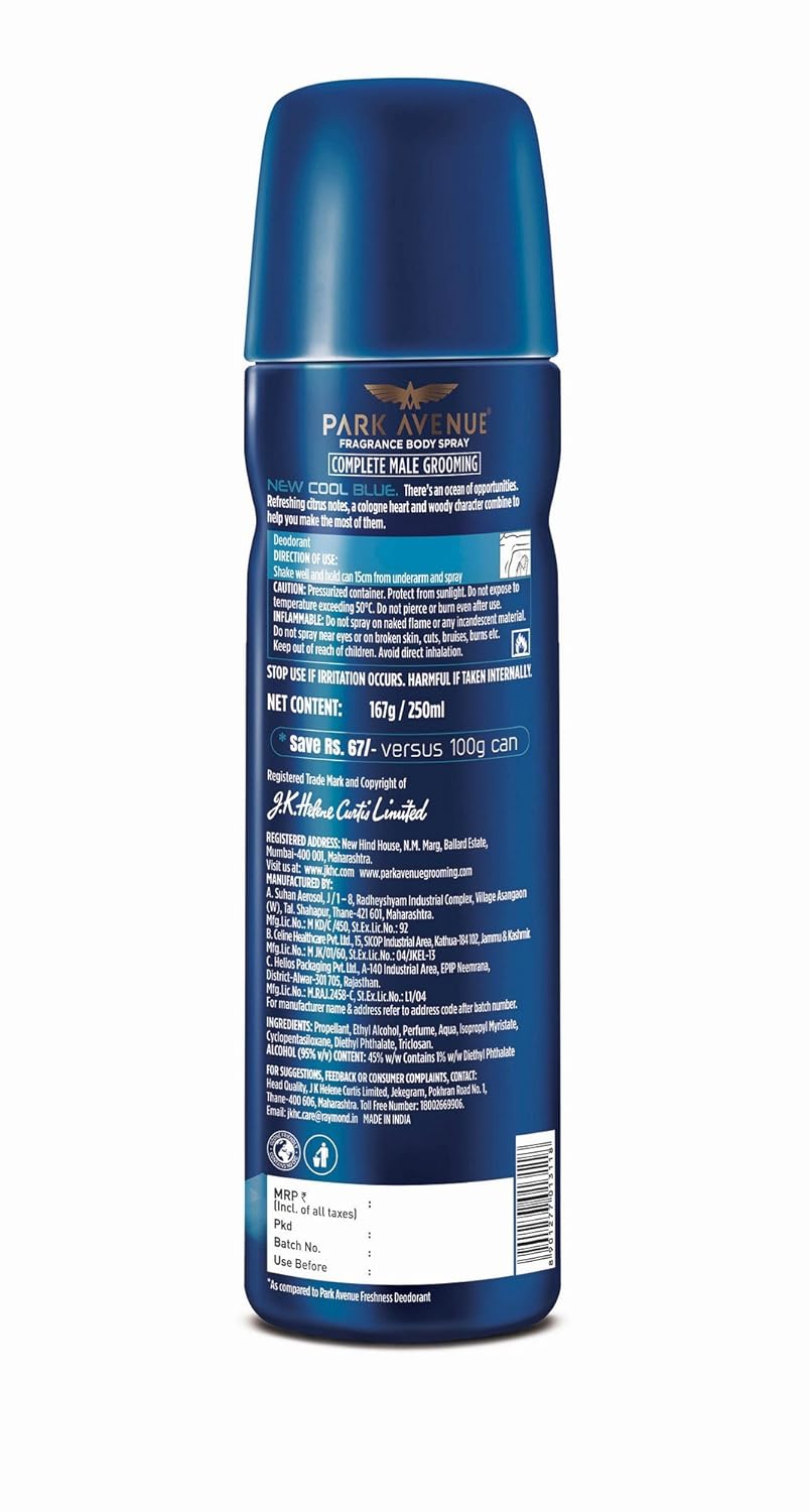 Park Avenue Cool Blue Body Deodorant Super Saver Mega Pack for Men, 167g