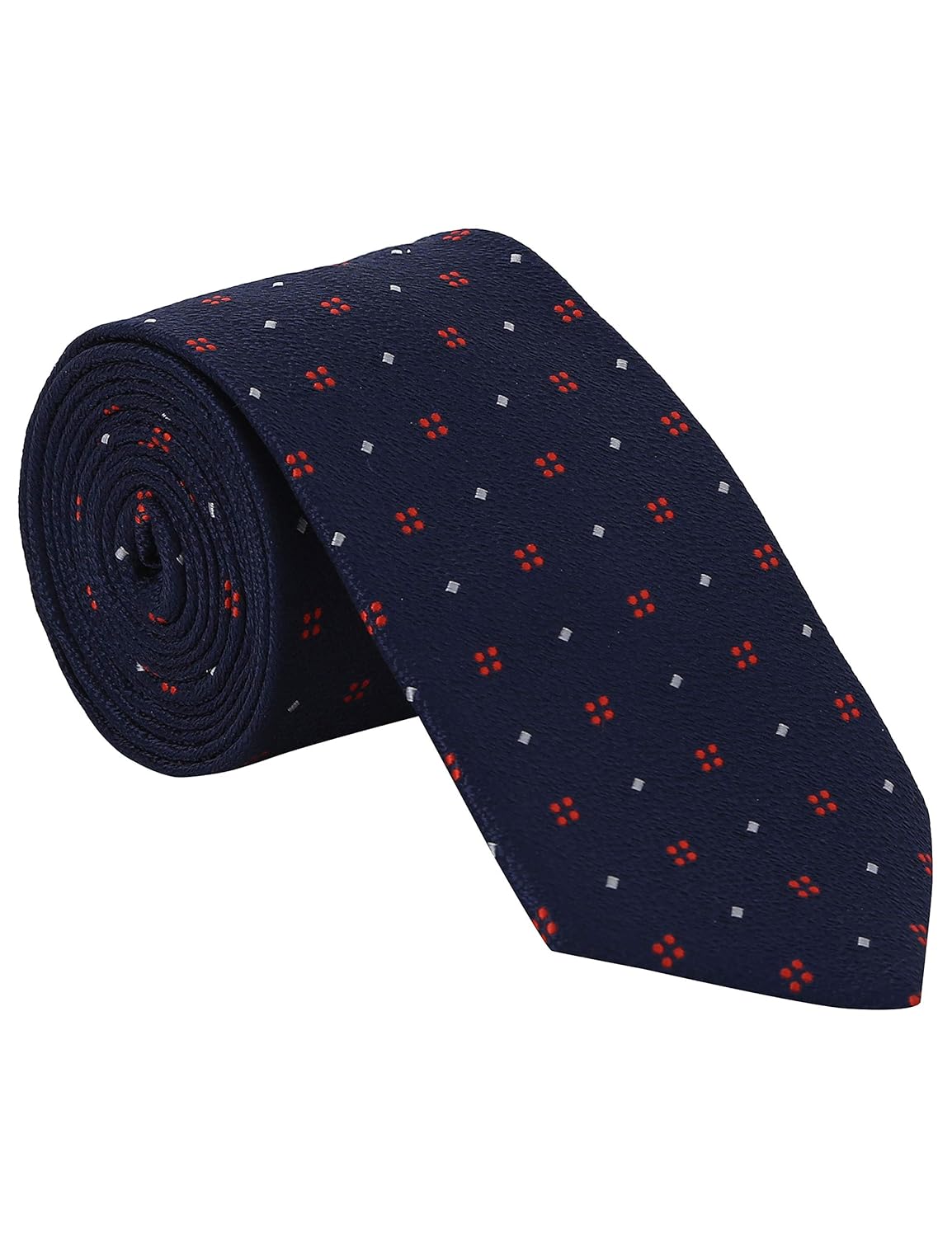 Make an impression on onlookers as you flaunt this dark blue necktie from Park Avenue with your formal ensemble. The subtle self-woven design all over lends this necktie an elegant touch, while the 100% polyester fabric makes it easy to maintain. |
