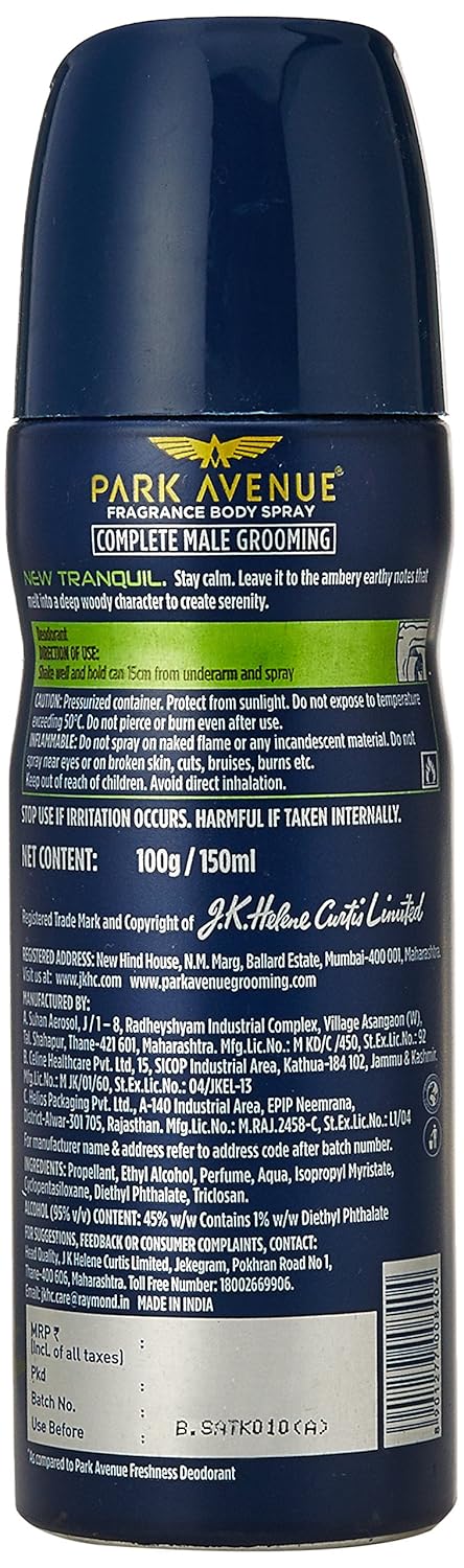 Park Avenue Tranquil Fragrance Body Spray for Men, Stay Calm, 150ml