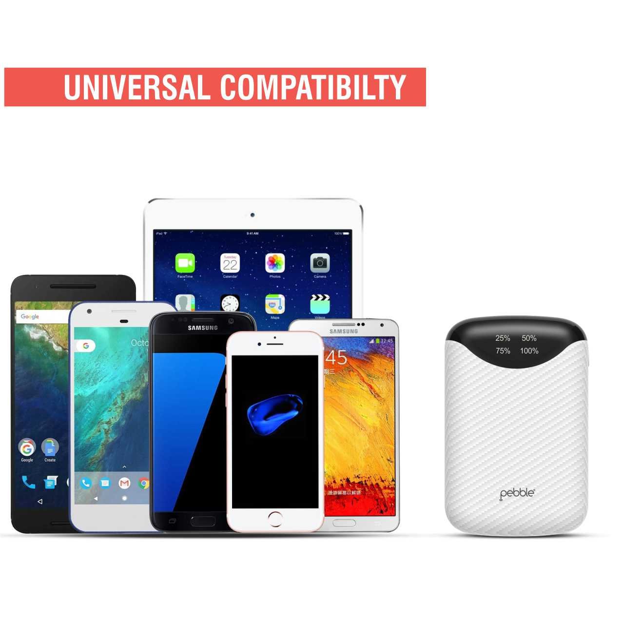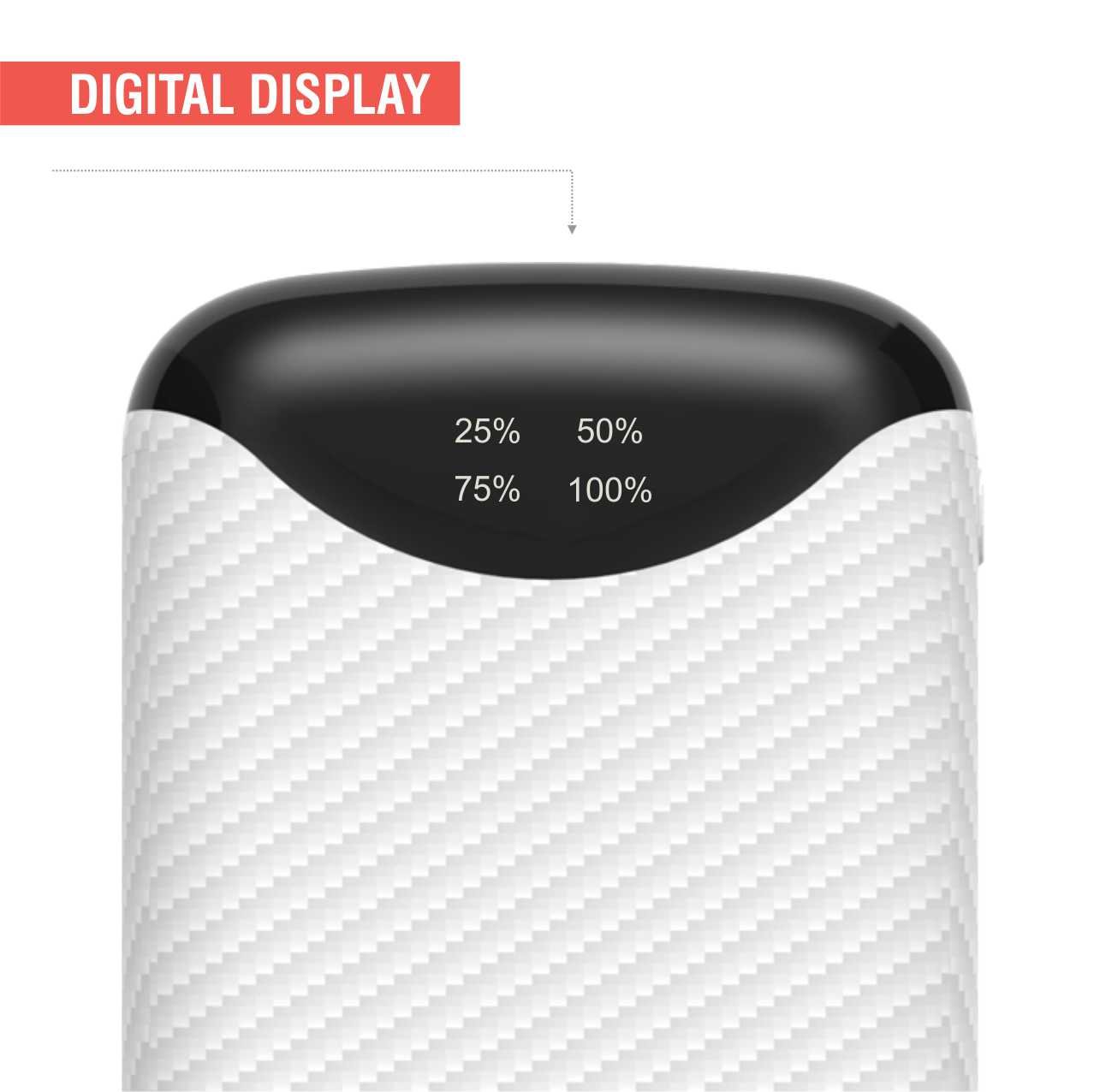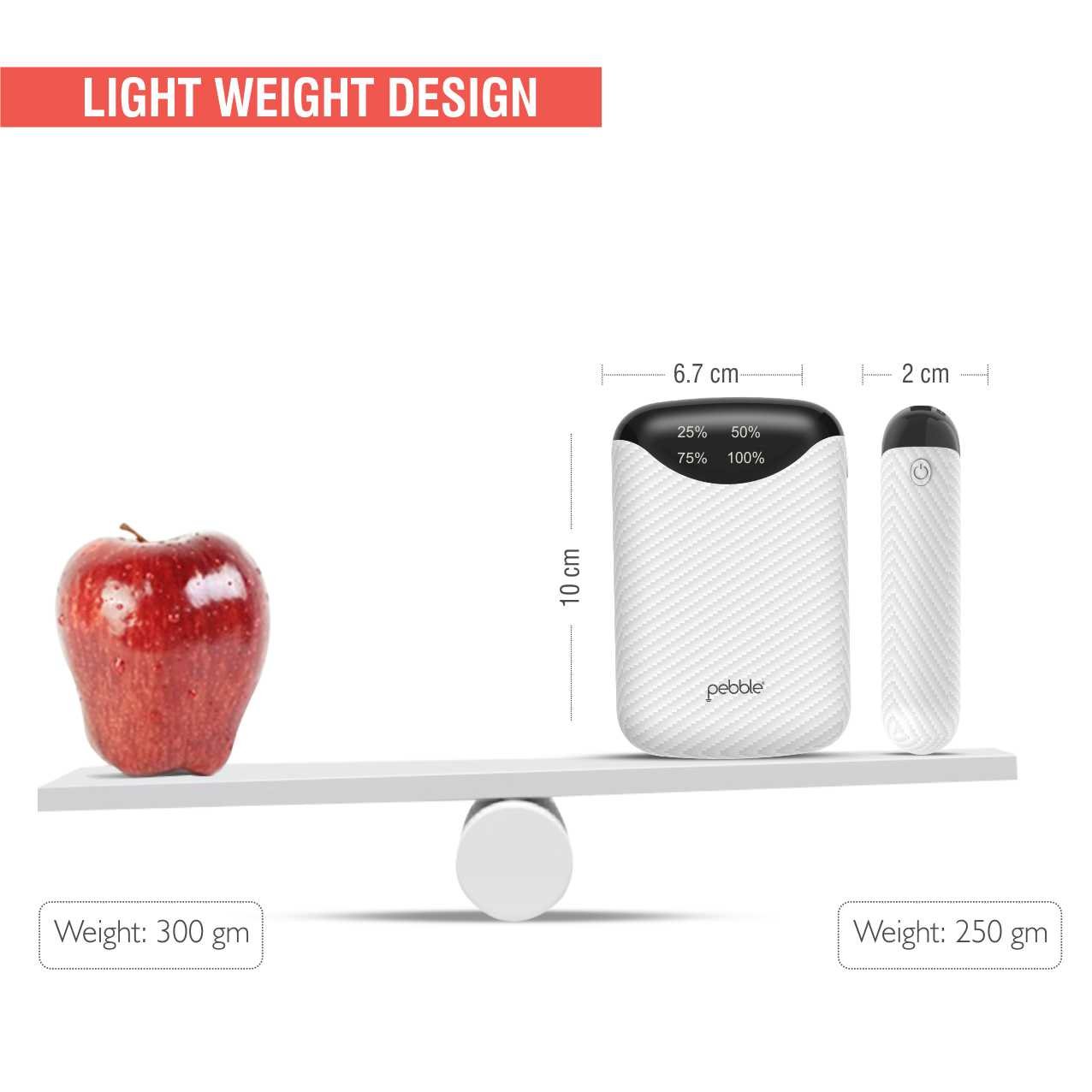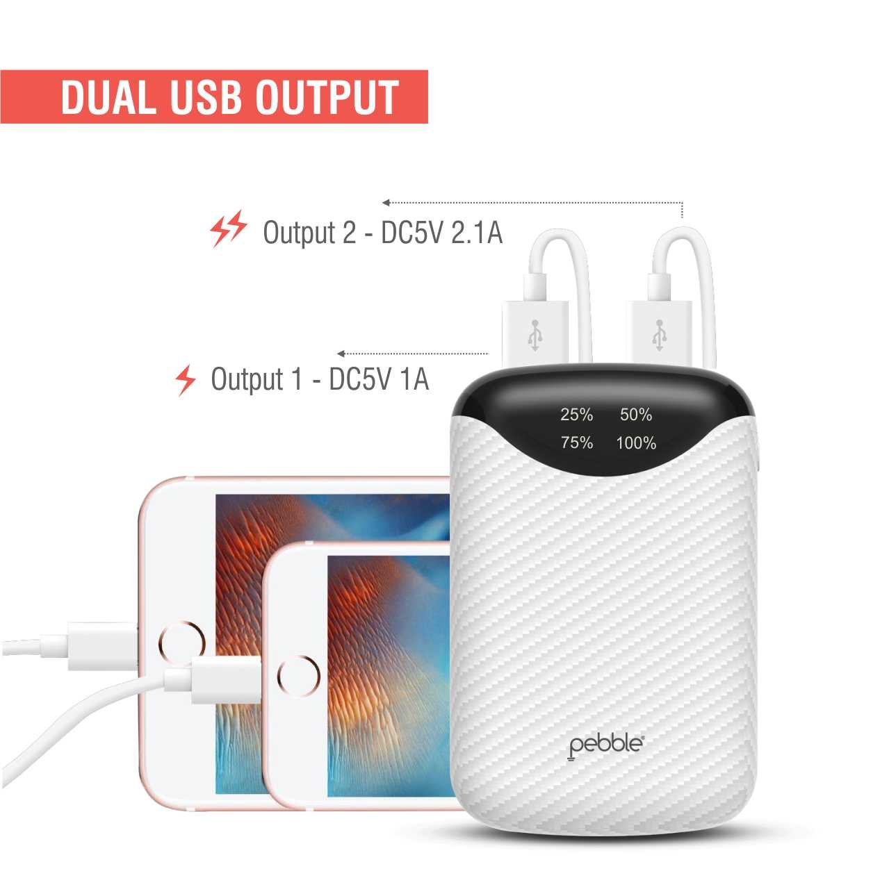 Pebble Pico 10,000mAH Palm sized Power bank, Its truly portable - Palm Sized (10 x 6.7 x 2 cm) design makes it the smallest among all other power banks available. With dual usb outputs you can charge 2 devices simultaneously, it also comes with a digital display which shows remaining power available to juice up your devices in digital (25-50-75-100) format. |