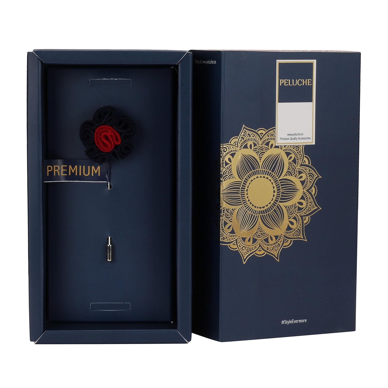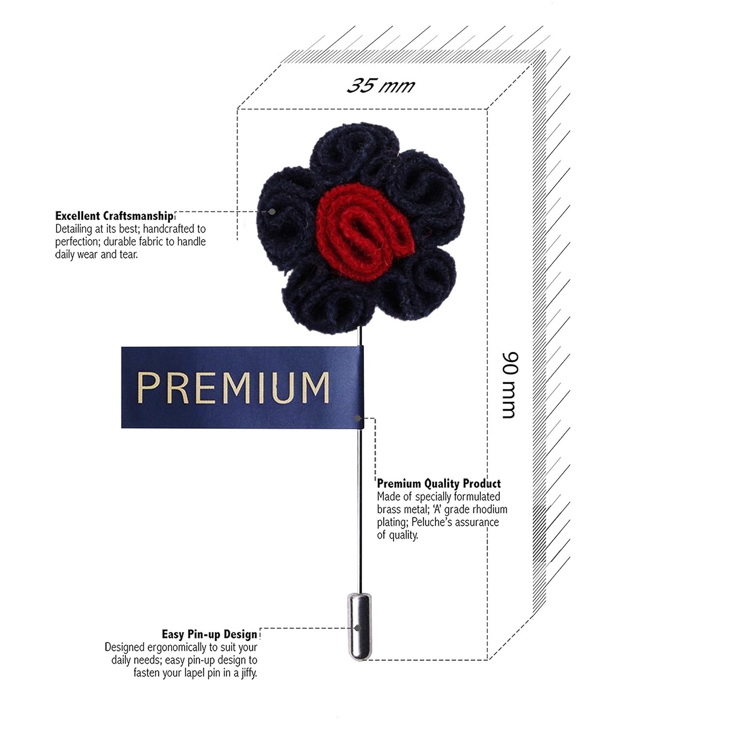 Your peers will go green with envy when they see you donning this navy blue and red colored lapel pin, which is brought from the collection of Peluche. Handcrafted using optimum quality velvet fabric and specially formulated brass metal with A grade rhodium plating, it is highly durable and has a flawless matte finish. Moreover, this floral lapel pin is ergonomically designed and is easy to pin up. It will be delivered to your doorstep in a chic box packaging. Gift your friend this pin and make him feel special. Exhibiting a remarkable craftsmanship, Peluche believes in zero compromise in the quality of its products. |