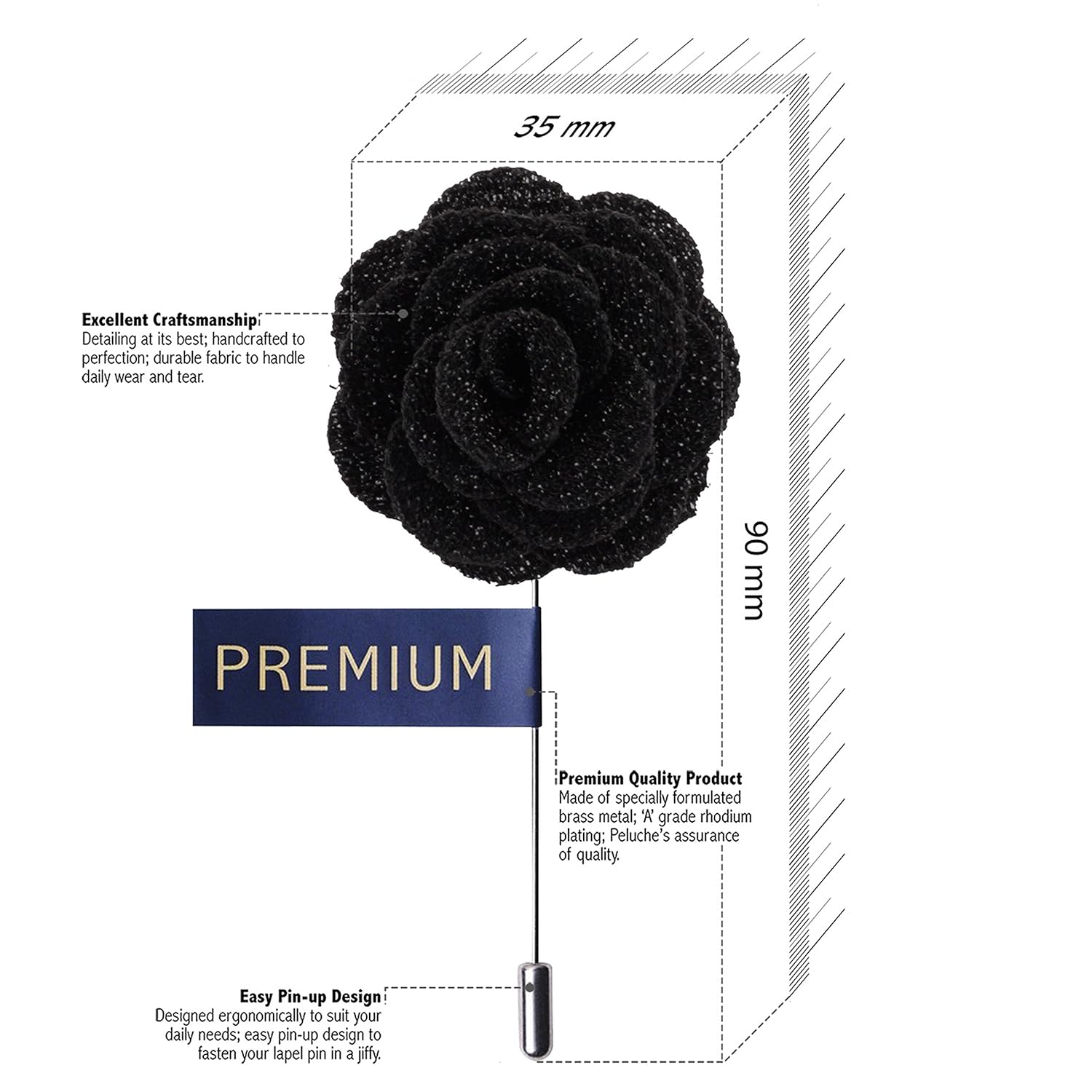 Become the center of attraction at any party you attend by wearing this black colored lapel pin from the house of Peluche. Using premium quality durable polyester fabric and specially formulated brass metal with A grade rhodium plating, it is handcrafted with flawless matte finish. Ergonomically fashioned, this floral lapel pin has an easy to pin up design. Gift your friend this pin and make him feel special. It will be delivered to your doorstep in a chic box packaging. Exhibiting a remarkable craftsmanship, Peluche believes in zero compromise in the quality of its products. |