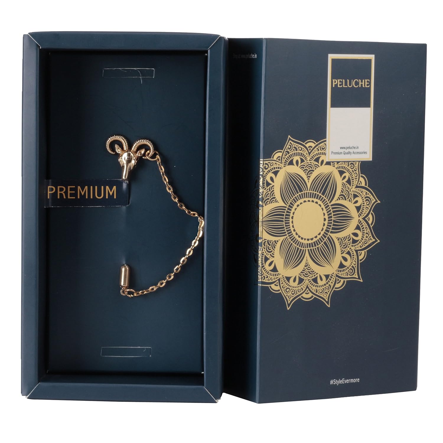 Try something different and fresh by adorning this golden colored lapel pin that is brought from the house of Peluche. Using premium quality durable metal, it is handcrafted with flawless matte finish. Ergonomically fashioned in the shape of the head of a ram, this lapel pin has an easy to pin up design. Gift your friend this pin and make him feel special. It will be delivered to your doorstep in a chic box packaging. Exhibiting a remarkable craftsmanship, Peluche believes in zero compromise in the quality of its products. |