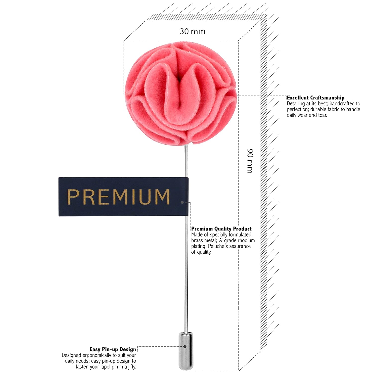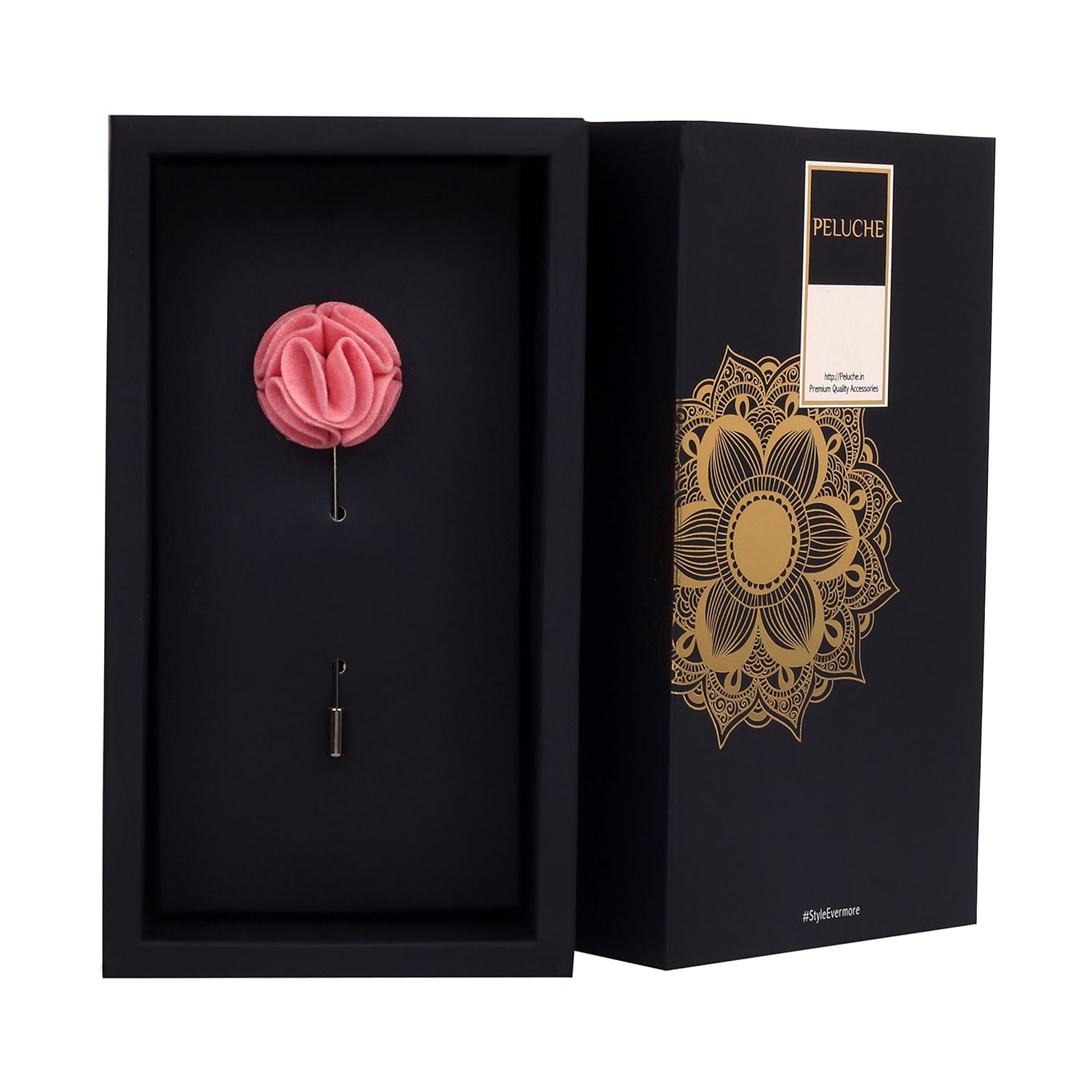 Buy this amazing Pink Colored, Floral Styled brooch lapel pin made using the finest Velvet, Brass from Peluche, StyleEvermore! This ornamental lapel pin has been handmade to perfection for the dapper gentleman who knows the importance of little things which make a big difference. Carefully selected, best materials are used to hand craft this piece. Leadfree coating of 'A' grade Rhodium is done on specially formulated brass to provide unparalleled strength and shine, because we at Peluche, believe in only the best when it comes to quality. You receive this accessory at pocket friendly price in a premium hard case chic storage box which is suitable for gifting purposes as well. |
