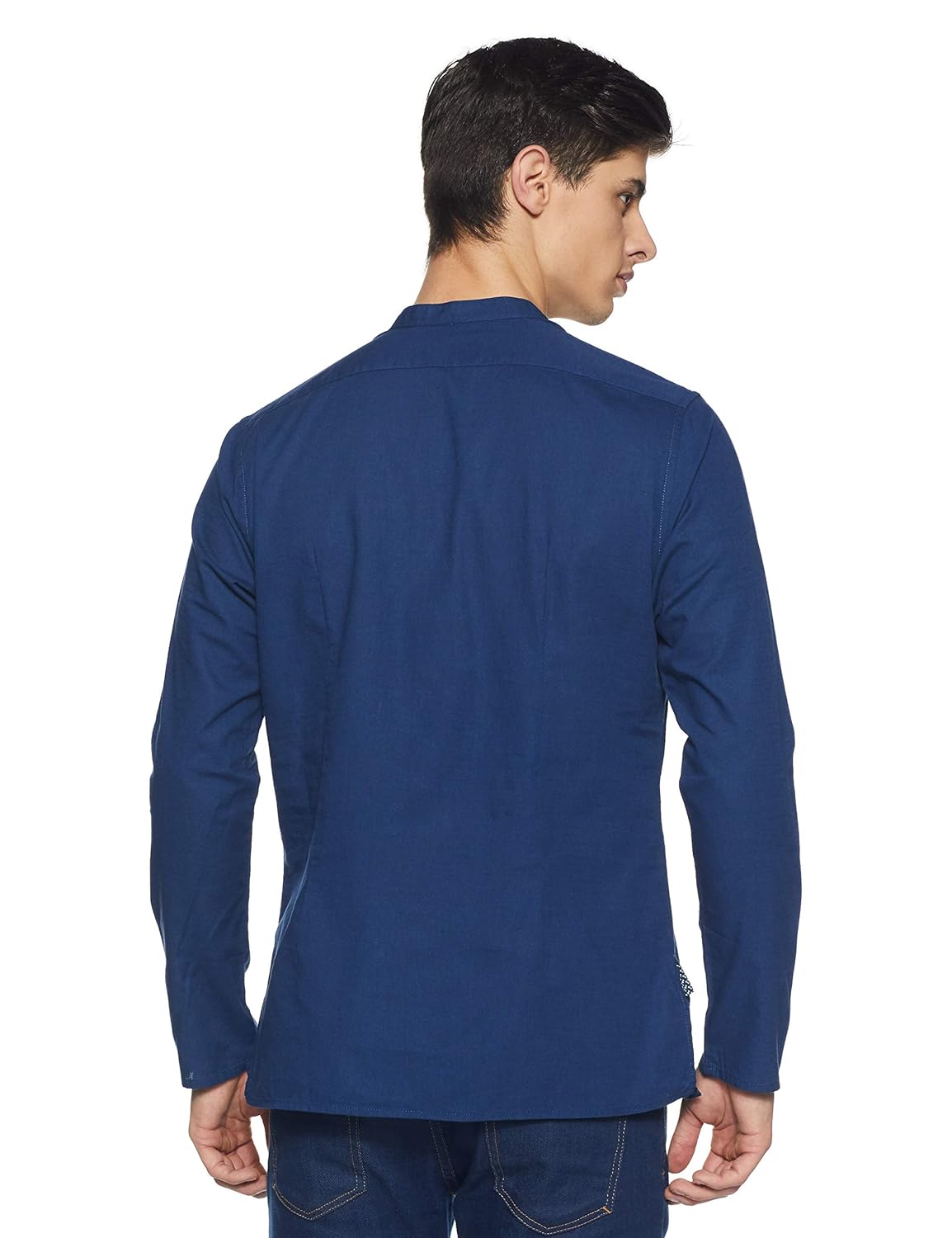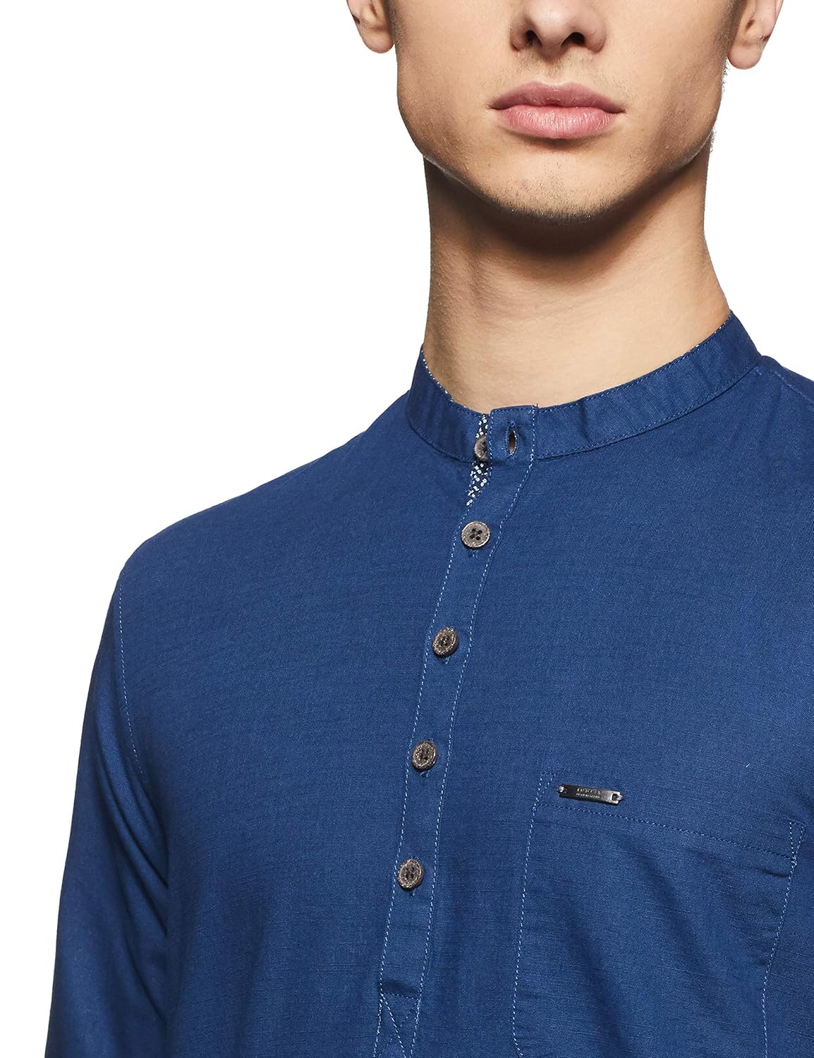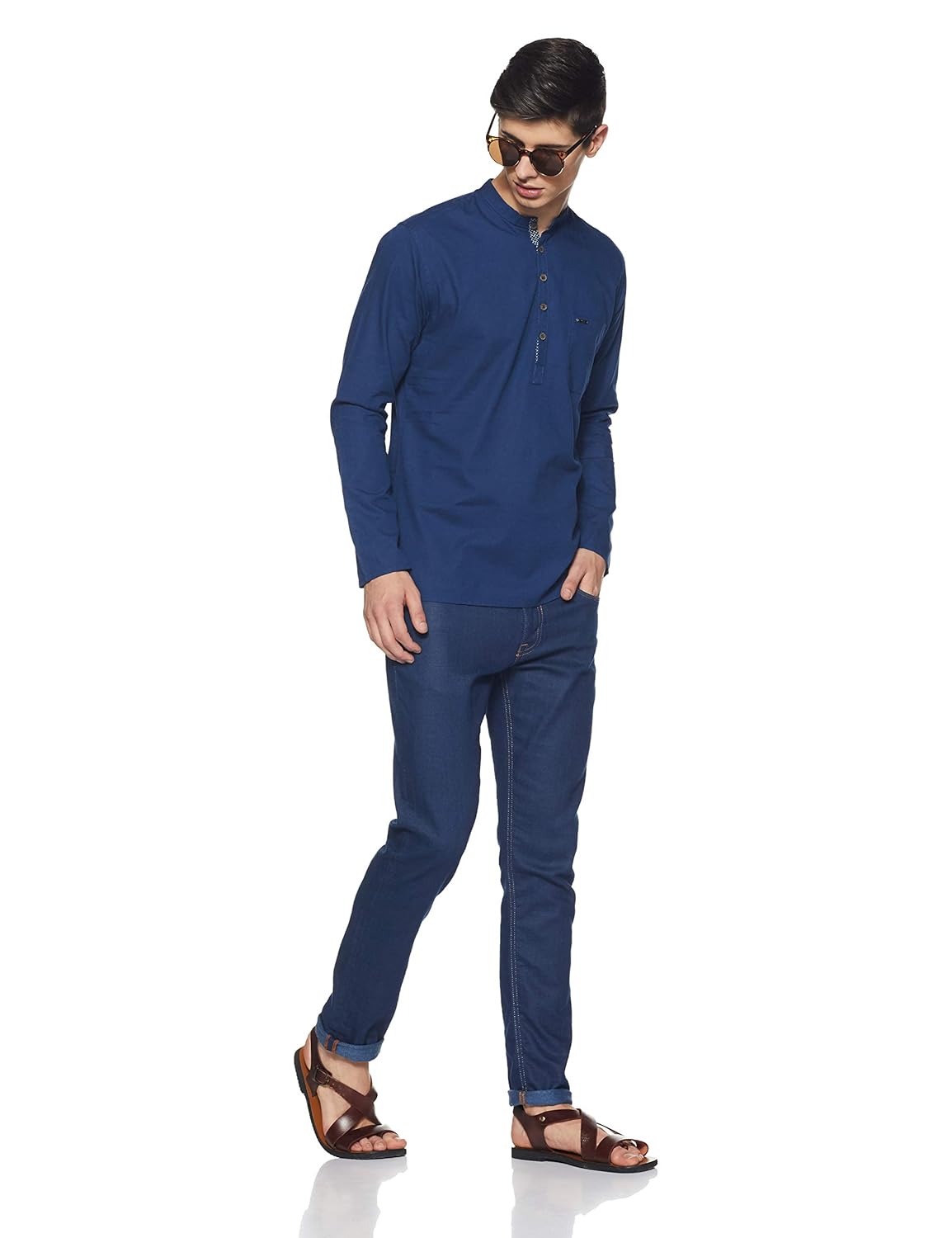 Bring an element of style to your traditional dressing with this Blue solid kurta from Peter England.